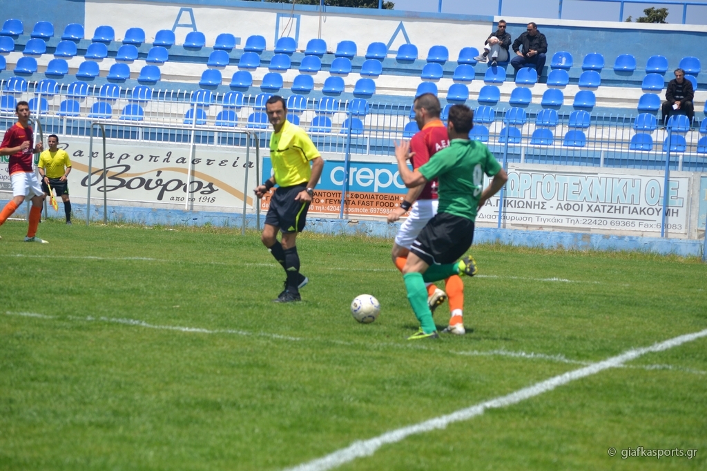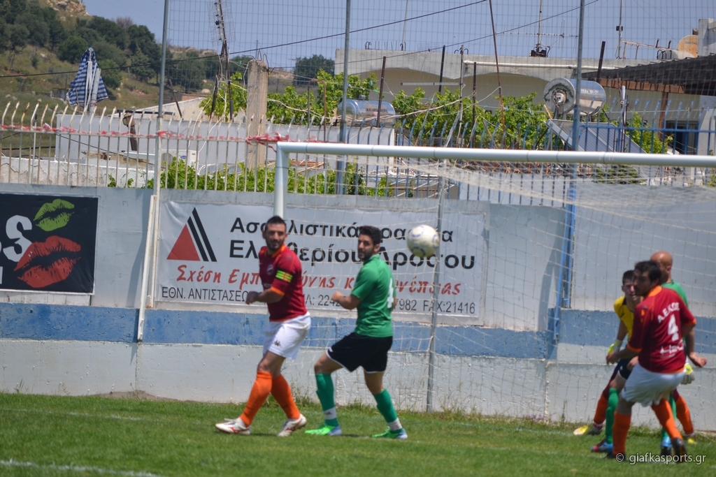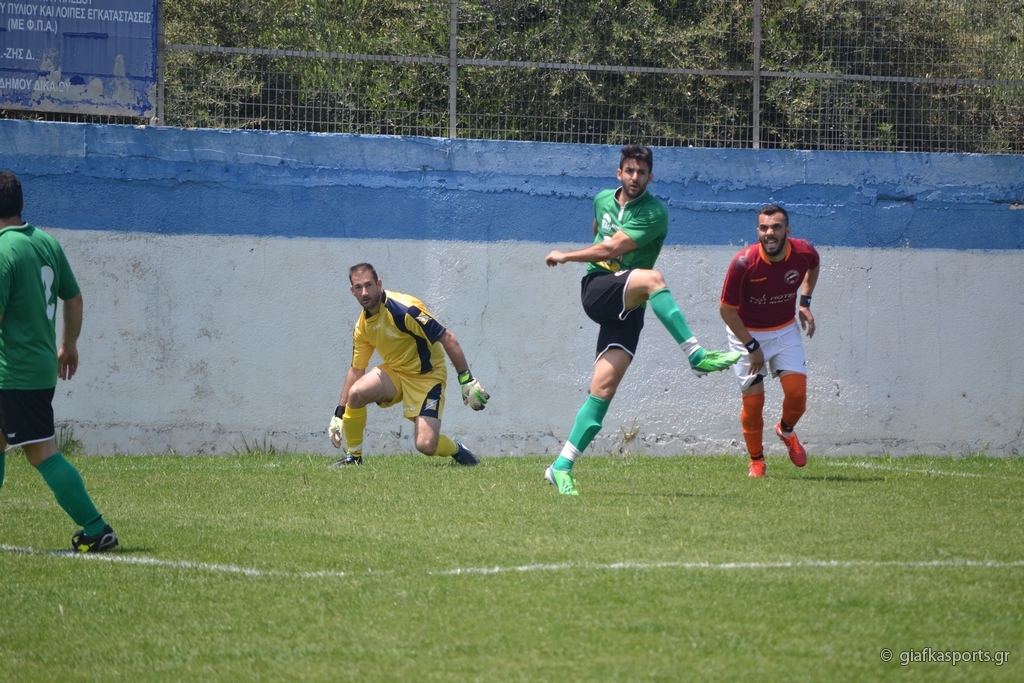 31′ ΓΚΟΛ!! Εκτέλεση φάουλ του Μπερετούλη ο Σχοινάκης πήρε την κεφαλιά η μπάλα χτύπησε στο αριστερό δοκάρι και ο Αποστολόπουλος από κοντά εκανε το 1-0.