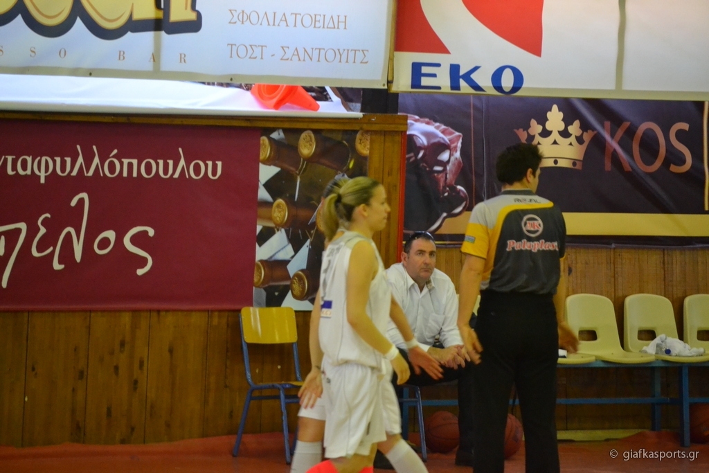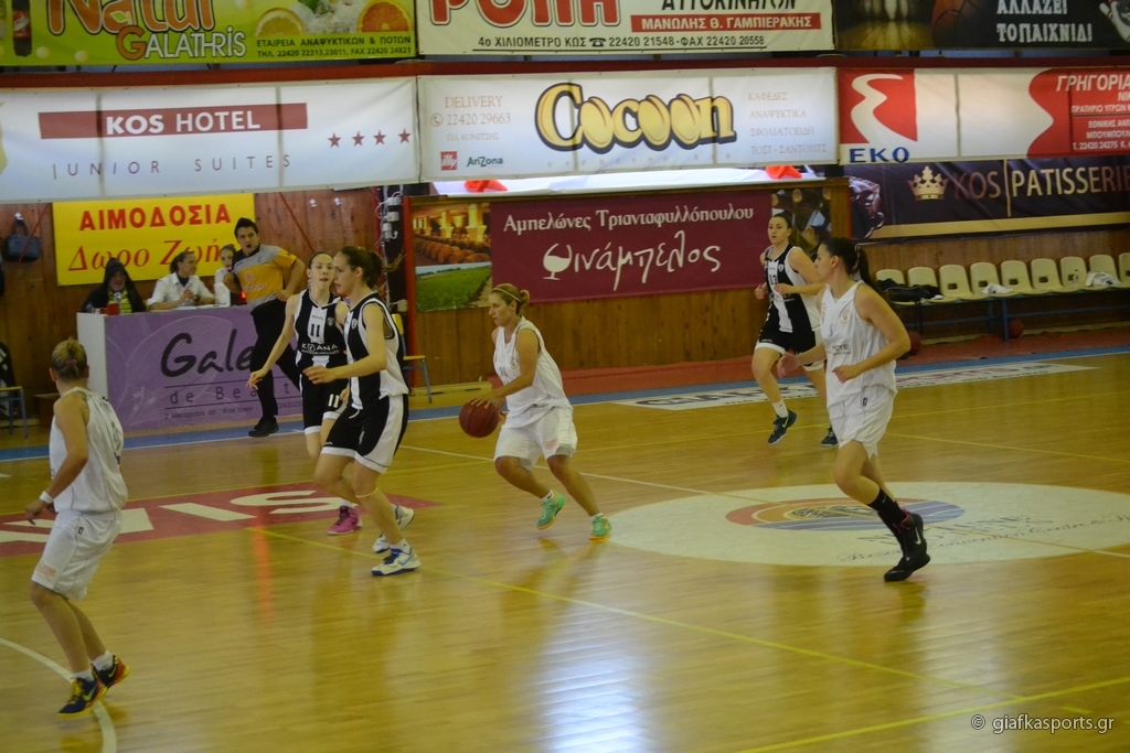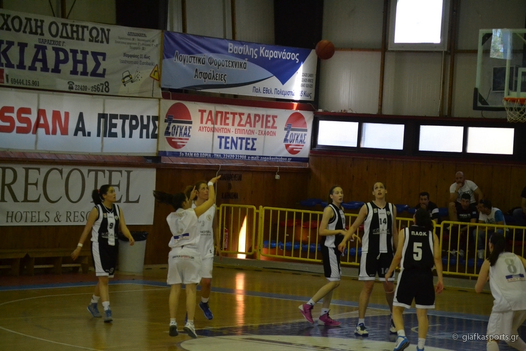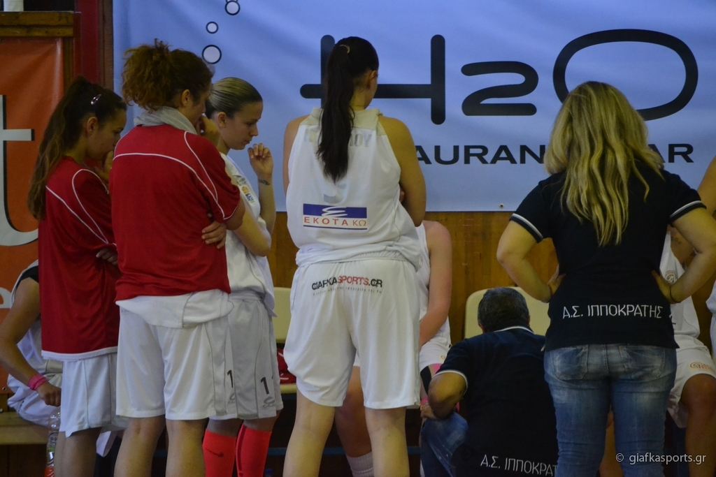 Στο πρώτο ημίχρονο ο Ιπποκράτης Kos Hotel δεν είχε πρόβλημα επιθετικά με την Χελιώτη να έχει καθαρό μυαλό και να μοιράζει αρκετές ασίστ στις συμπαίκτριες της ωστόσο στον αμυντικό τομέα ήταν ιδιαίτερα χαλαρός με τον ΠΑΟΚ να μπορεί έτσι να είναι συνεχώς κοντά στο σκορ (18-13 στο 1ο δεκάλεπτο, και 35-30 στο 2ο δεκάλεπτο) παρόλο που η Τελίδου δεν μπορούσε να βρει ελεύθερο πεδία για να σουτάρει. Οι γηπεδούχες είχαν σε καλή μέρα Χελιώτη, Κουφογιάννη, και Κεχαγιά και έτσι υπήρχε μια πολυφωνία στην επίθεση.