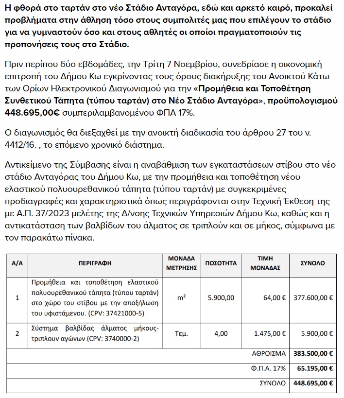 Εμείς συνεχίζουμε αυτή τη φορά με το Νέο Στάδιο «Ανταγόρας» με την αντικατάσταση του ταρτάν που θα δώσει ξανά αγώνες υψηλού επιπέδου στο νησί μας.