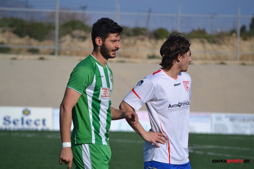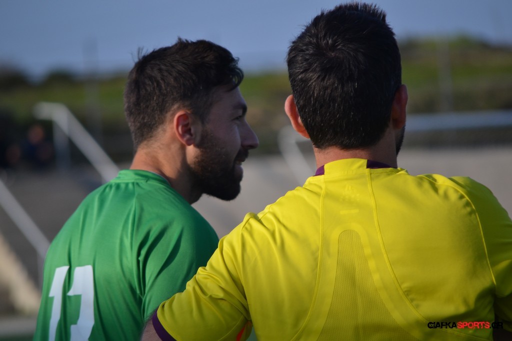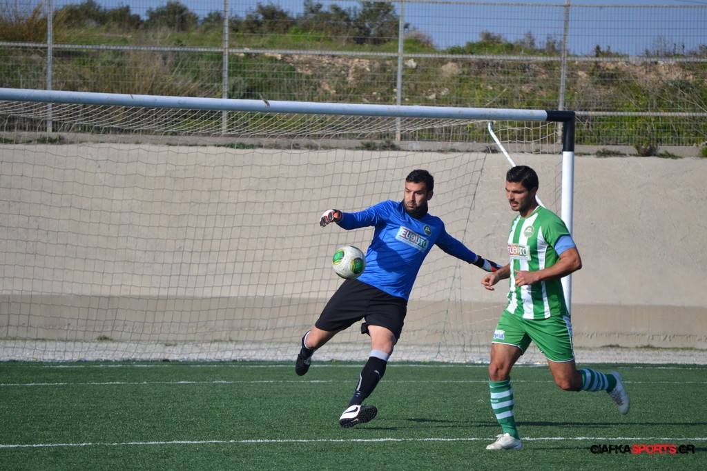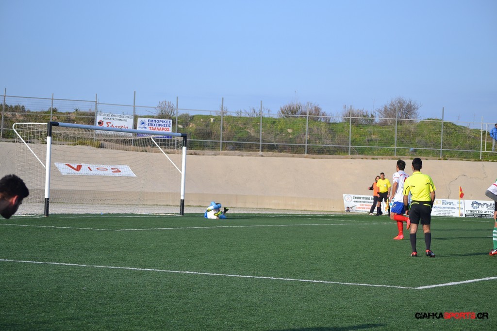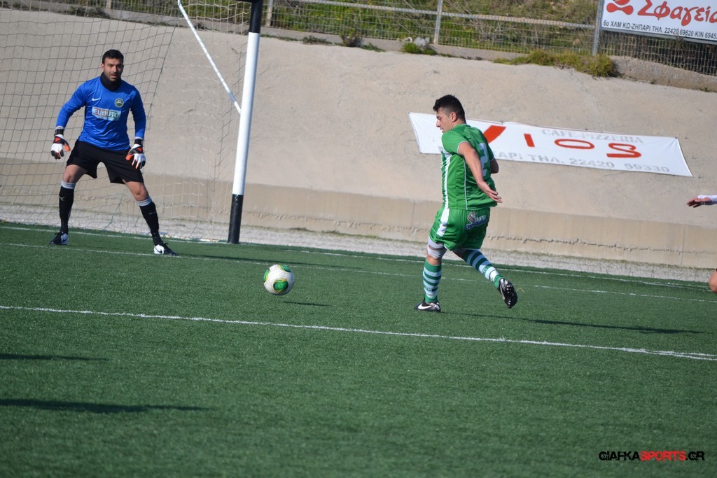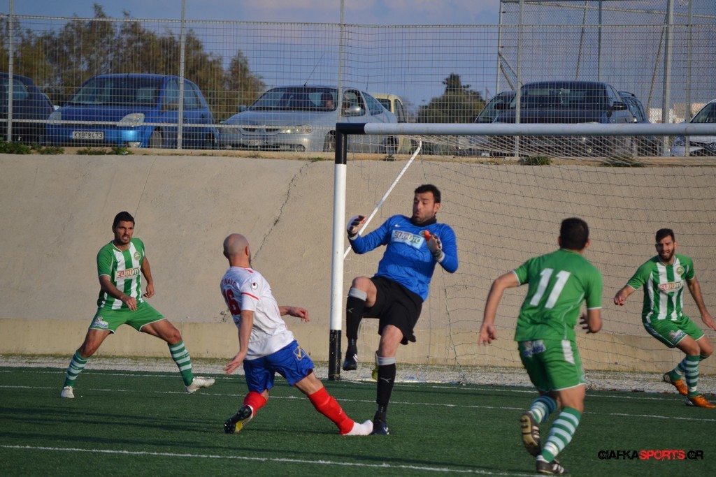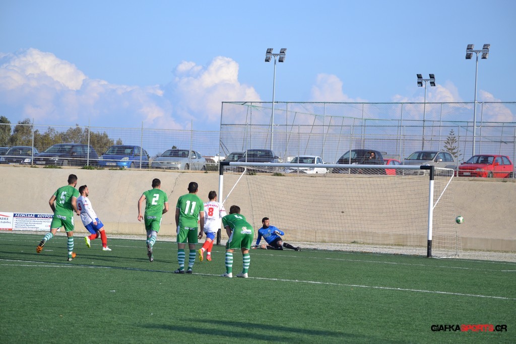 10′ O Τσιούνης πρόλαβε στο σρπίντ του Καράλιαμη, έκανε το σουτ με την μπάλα να περνάει λίγο έξω από το αριστερό κάθετο δοκάρι του Μιχαλάκη.