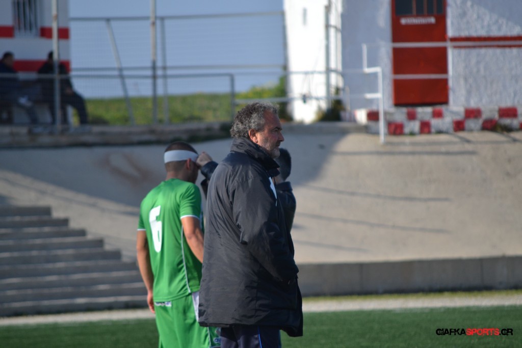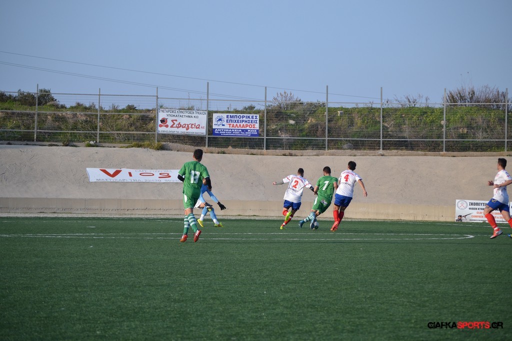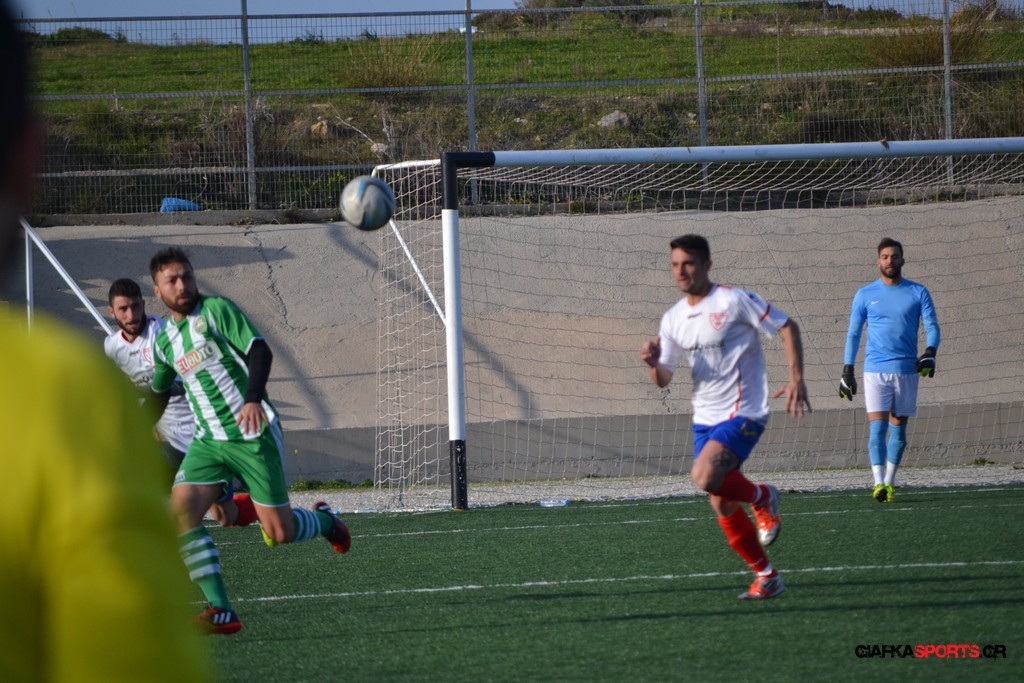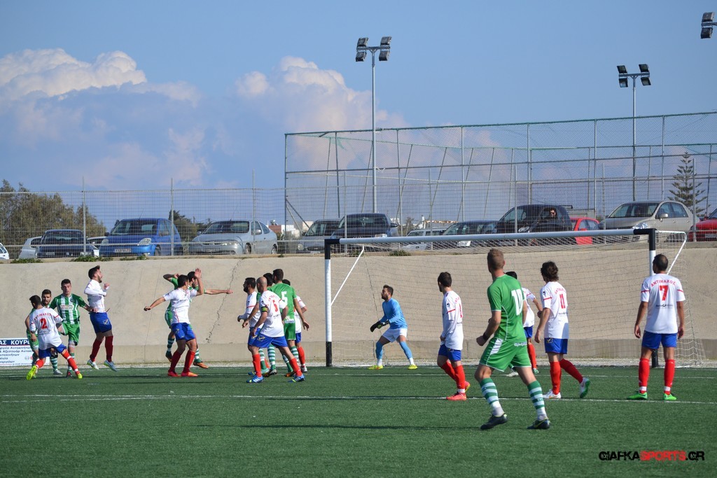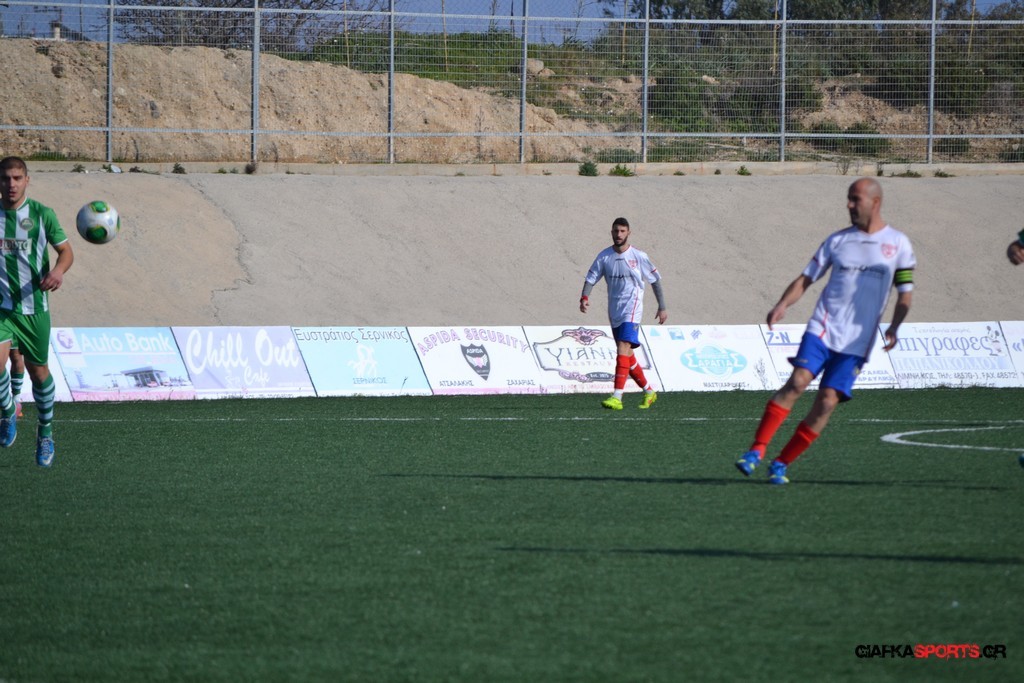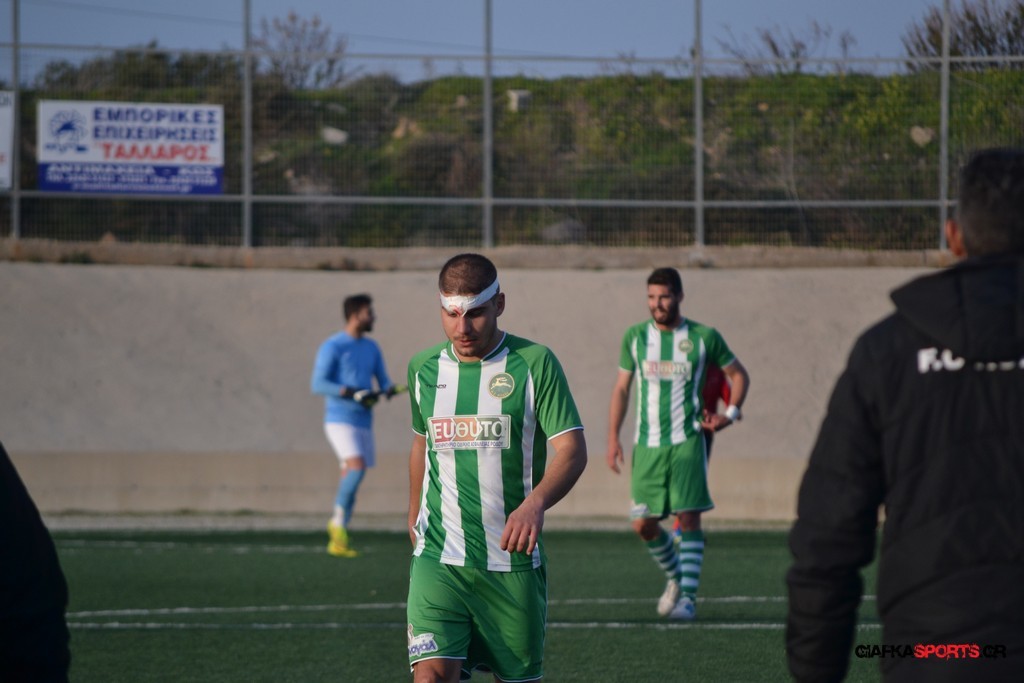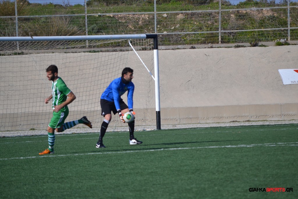 10′ O Τσιούνης πρόλαβε στο σρπίντ του Καράλιαμη, έκανε το σουτ με την μπάλα να περνάει λίγο έξω από το αριστερό κάθετο δοκάρι του Μιχαλάκη.