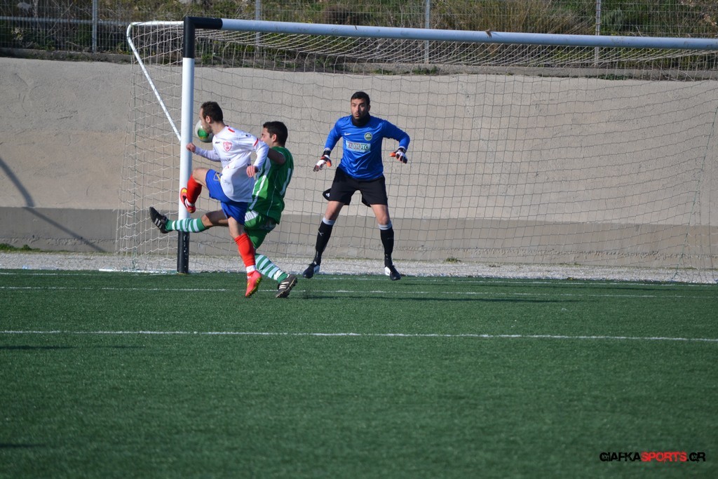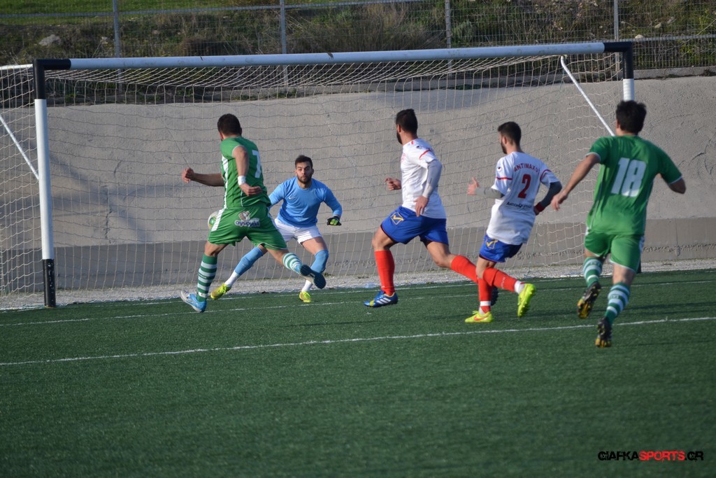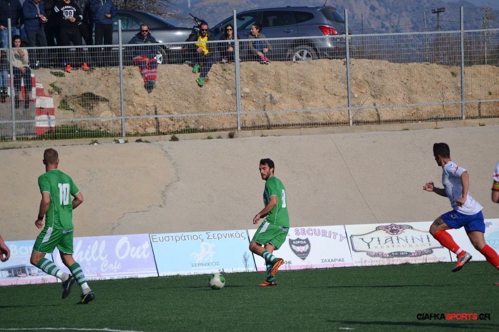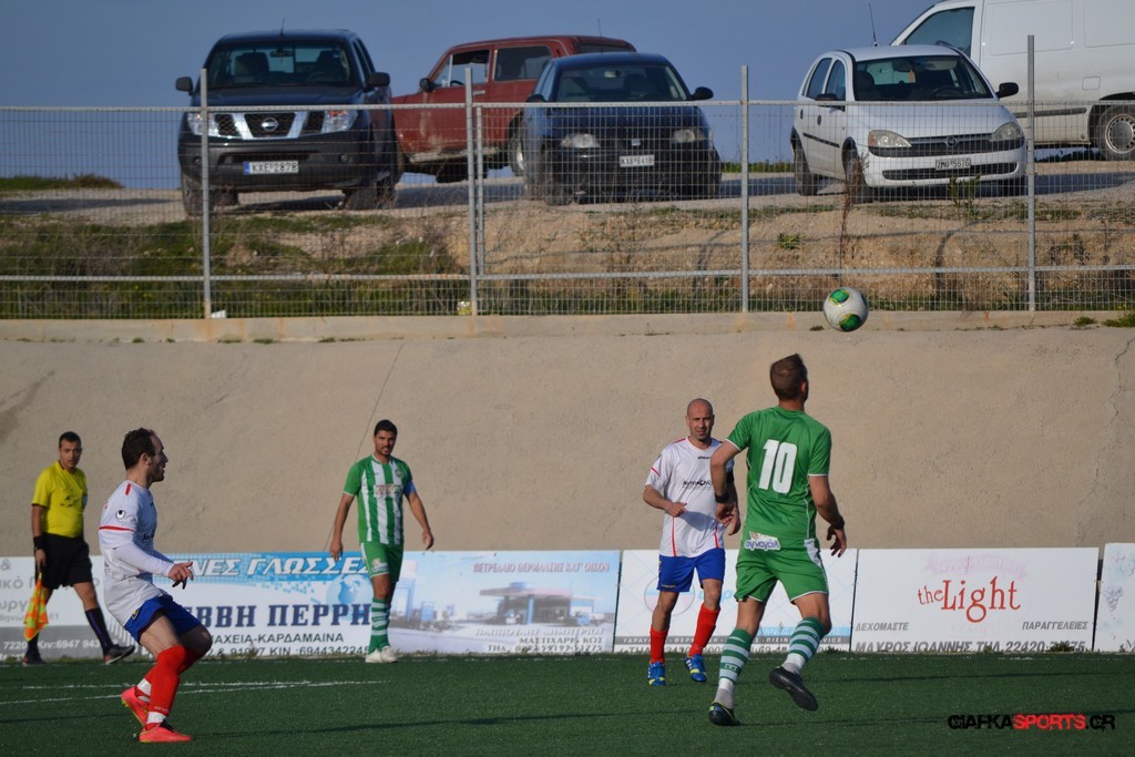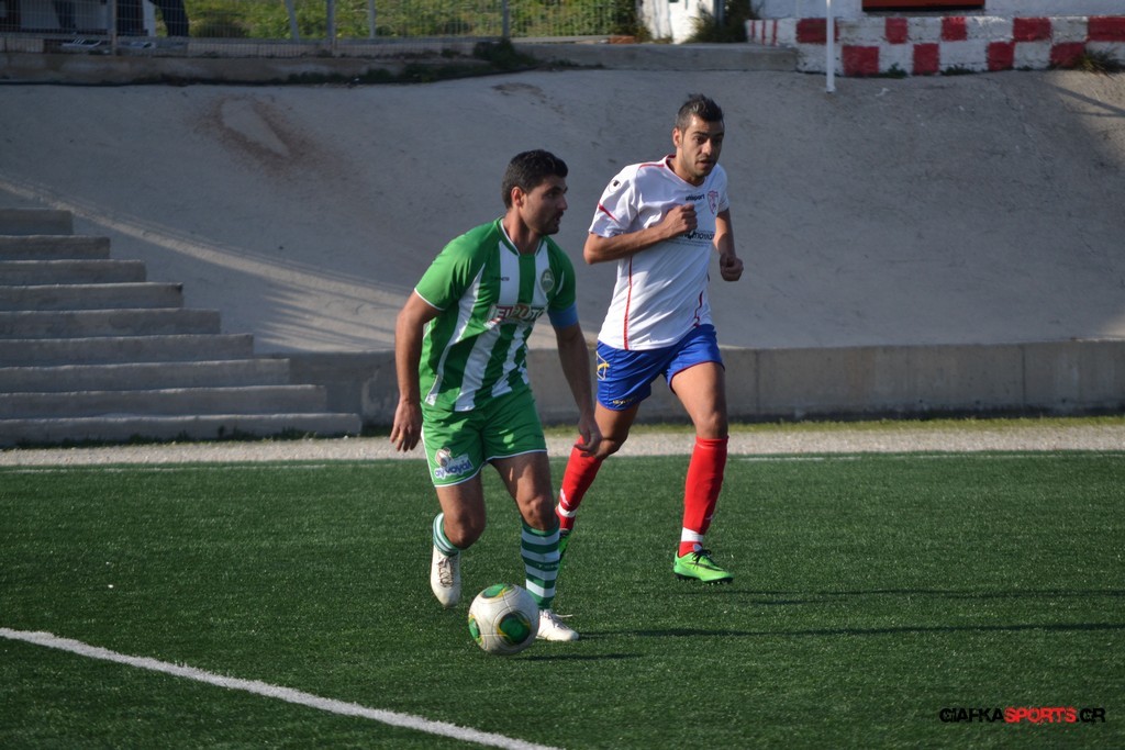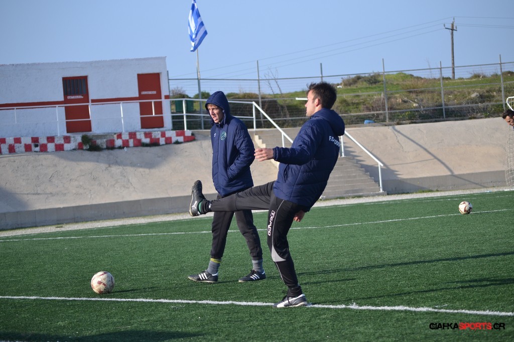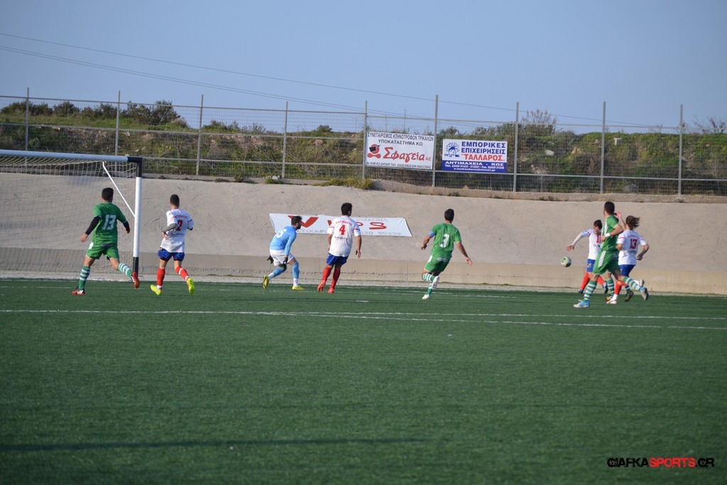 10′ O Τσιούνης πρόλαβε στο σρπίντ του Καράλιαμη, έκανε το σουτ με την μπάλα να περνάει λίγο έξω από το αριστερό κάθετο δοκάρι του Μιχαλάκη.