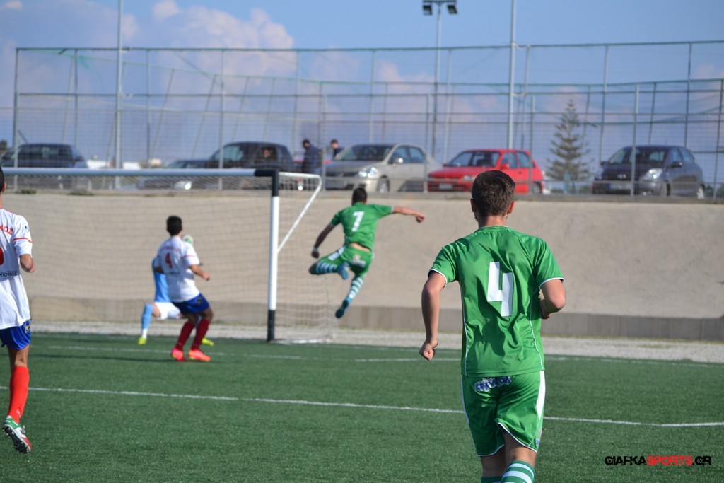 16′ Δυνατό σουτ του Παυλίδη , η μπάλα πέρασε λίγο έξω από το δεξί δοκάρι του Μιχαλάκη.