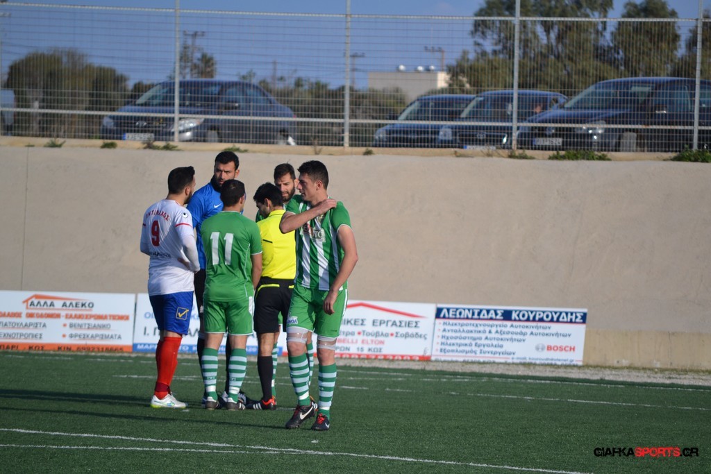 85′ Ο Συνεσίου έκανε τη σέντρα από τα αριστερά, ο Μπεκιρλάρι τσίμπησε την μπάλα πριν εκείνη φτάσει στον Καντιμοίρη, ο αρχηγός της Ρόδου τον ανέτρεψε με τον Ωραιόπουλο να δείχνει συνεχίζεται.