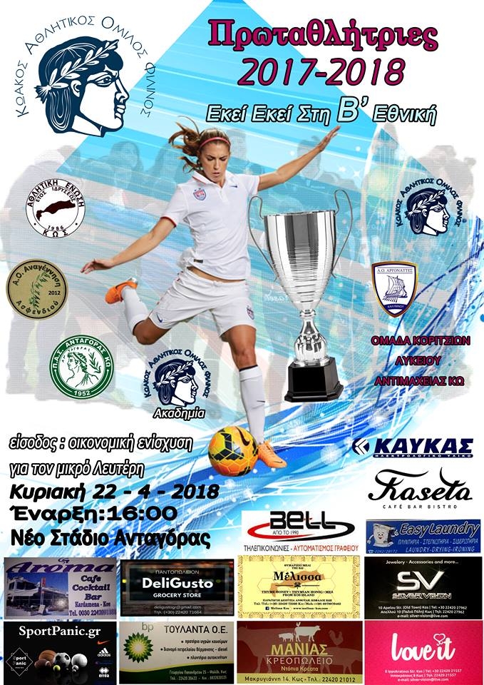Η γιορτή θα ξεκινήσει στις 16:00 και θα πραγματοποιηθούν φιλικοί αγώνες ανάμεσα στις ακαδημίες του Φιλίνος, της Α.Ε Κω , της Αναγέννησης Ασφενδιού, του Ανταγόρα, των Αργοναυτών ενώ θα συμμετάσχει και η ομάδα του Λυκείου της Αντιμάχειας που κατέκτησε την πρώτη θέση στην Κω.