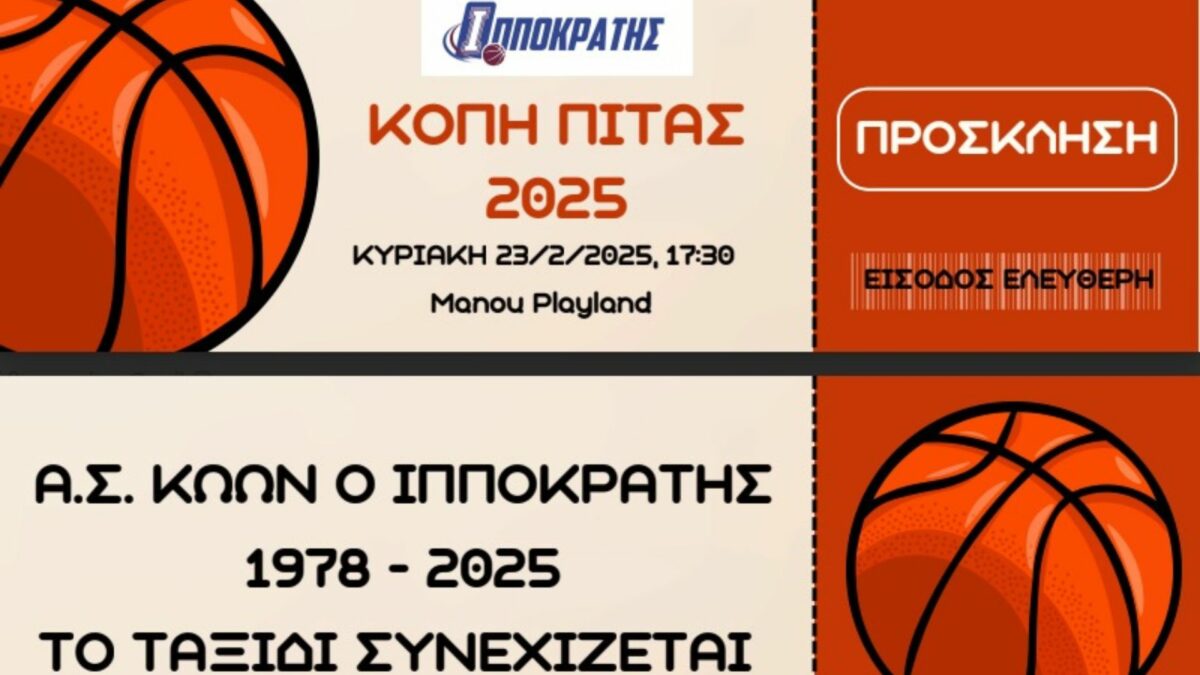 Ανακοίνωση – πρόσκληση εξέδωσε ο Ιπποκράτης για την κοπή της πίτας του συλλόγου στο Μanou Playland την Κυριακή στις 17:30.