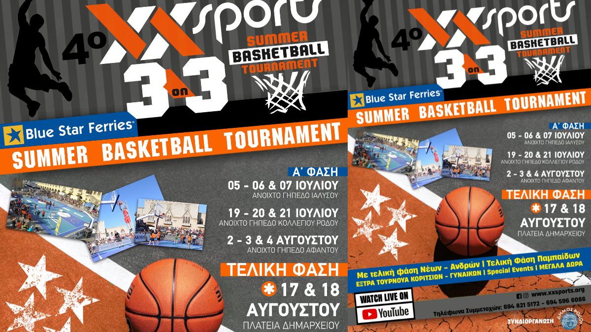 Το τέταρτο XXSPORTS 3on3 Summer Basketball Tournament επιστρέφει. Ένα πρωτοποριακό τουρνουά που θα διεξαχθεί σε δύο φάσεις και έχει ως σκοπό την αναβάθμιση του αθλήματος σε διάφορα χωριά του νησιού μας, καλύπτοντας τον ευρύτερο πυρήνα της Ρόδου. Σκοπός της διοργάνωσης είναι να φέρουμε ο μπάσκετ πιο κοντά στα χωριά και τους ανθρώπους τους, οι οποίοι διψούν για αθλητισμό.