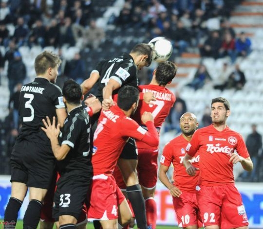 Ο “δικέφαλος” ‘έδειξε από την αρχή τις προθέσεις του για την κατάκτηση των τριών πόντων, ωστόσο οι ενέργειες πότε του Πέλκα, πότε του Αθανασιάδη δεν κατάφεραν να βάλουν μπροστά στο σκορ τον ΠΑΟΚ. Η πίεση των ασπρόμαυρων είχε κέρδος ένα πέναλτι, σε ανατροπή του Κίτσιου από τον Αγκιλέρα στο 44’. Ο Αθανασιάδης έστησε την μπάλα στην άσπρη βούλα, αλλά από τα έντεκα μέτρα δεν μπόρεσε να νικήσει τον Κηπουρό.