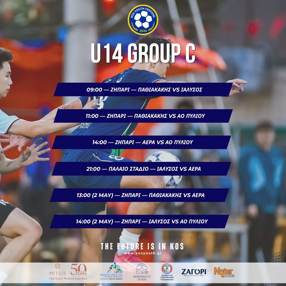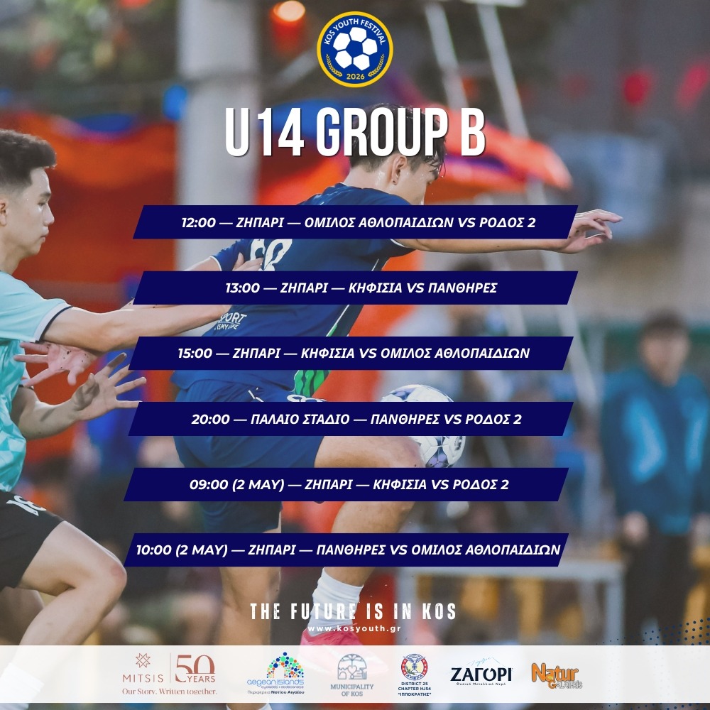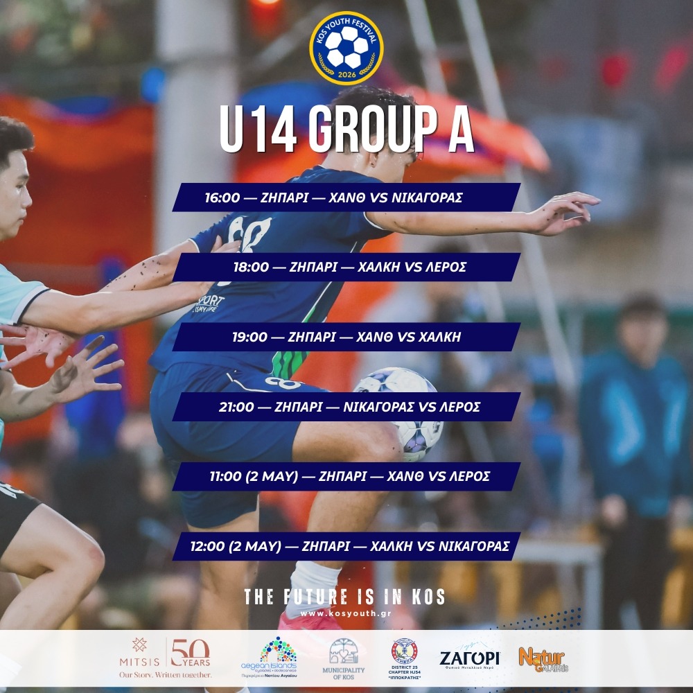 To πρόγραμμα αγώνων της Κ14 για το Kos Youth Festival