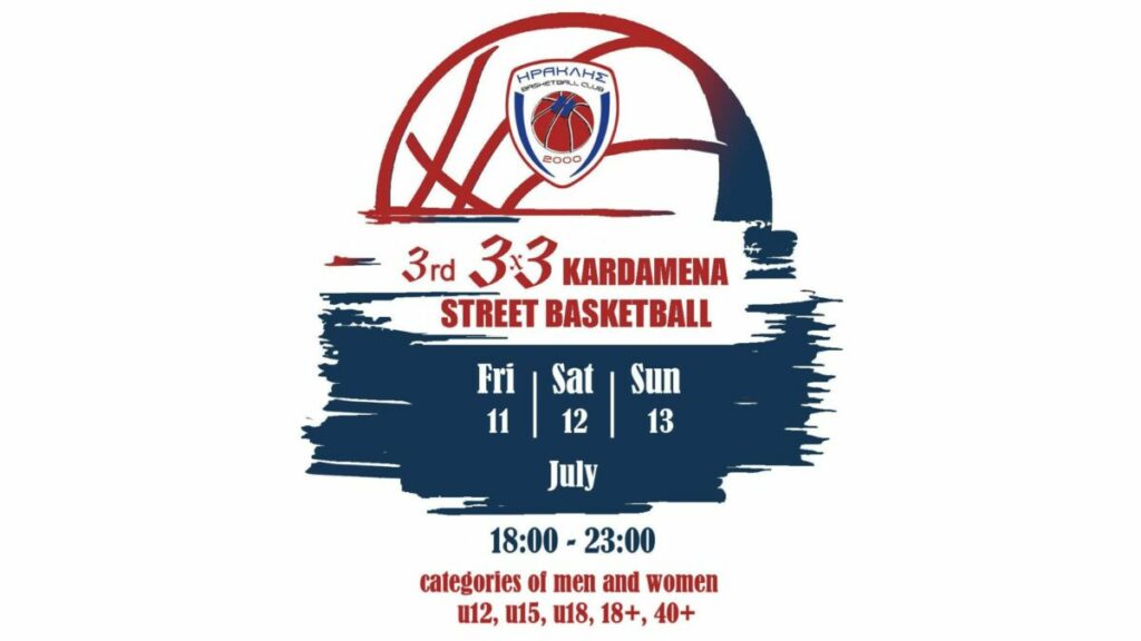 Η αντίστροφη μέτρηση έφτασε στο τέλος της! Ο Ηρακλής 2000 είναι πανέτοιμος να γεμίσει για ακόμη μια χρονιά την Καρδάμαινα με μπάσκετ, ένταση, χαμόγελα και μοναδικές στιγμές! Το 3ο 3×3 Street Basketball επιστρέφει δυναμικά, από 11 έως 13 Ιουλίου, στο γνώριμο θεατράκι της Καρδάμαινας, προσκαλώντας μικρούς και μεγάλους φίλους του αθλήματος σε ένα τριήμερο γεμάτο δράση, συναγωνισμό και διασκέδαση.