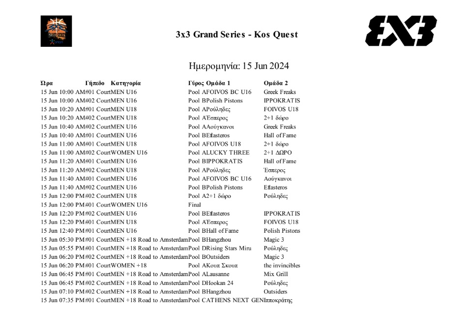 Η Κως φιλοξενεί αυτό το Σαββατοκύριακο μία από τις μεγαλύτερες αθλητικές διοργανώσεις, ένα από τα τρία master 3×3 τουρνουά STANDALONE QUEST που διοργανώνει η Ελληνική Ομοσπονδία Καλαθοσφαίρισης το καλοκαίρι 2024, με την υποστήριξη του ΟΠΑΠ.