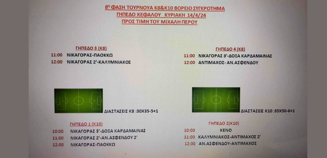 Ανακοινώθηκε απ’ την ομάδα του Νικαγόρα σε συνεργασία με την ΕΠΣ Δωδεκανήσου το πρόγραμμα για το 4ο τουρνουά Μιχάλης Πέρος που θα διεξαχθεί την Κυριακή στο γήπεδο Κεφάλου.