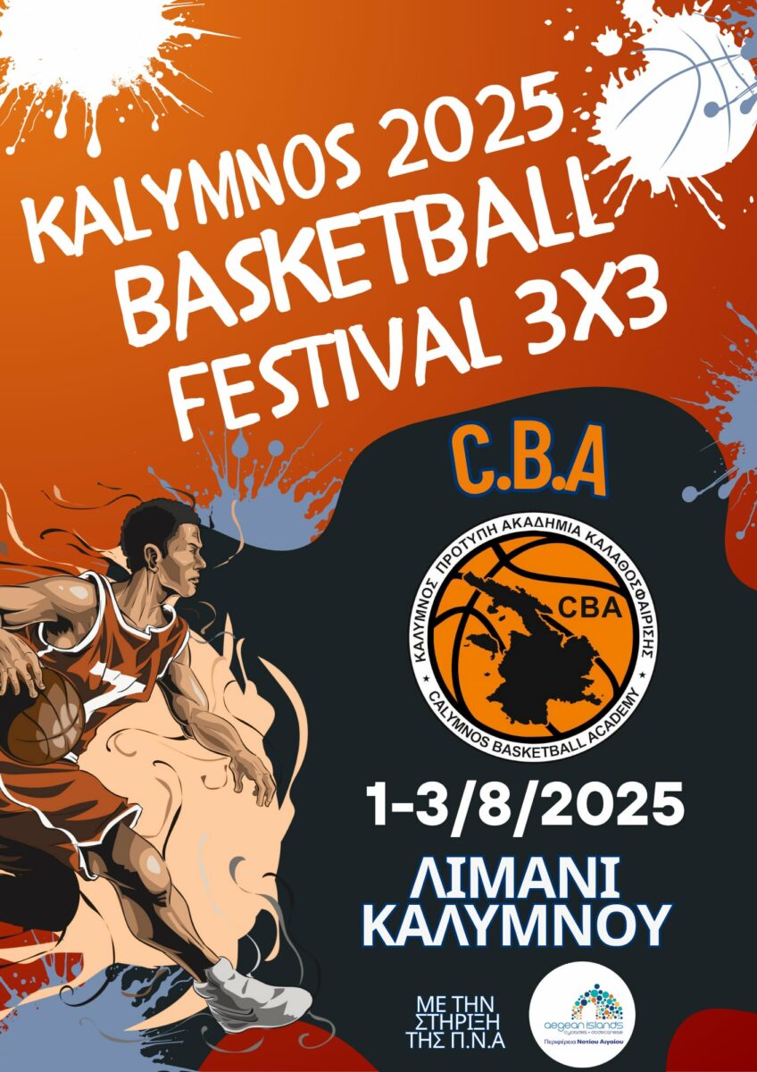 Η Ακαδημία Καλύμνου (CBA) διοργανώνει, το τριήμερο 1-3 Αυγούστου 2025 το 5ο «Kalymnos 3×3 Basketball Festival», που ανήκει στην κατηγορία «Επίσημες Αναγνωρισμένες Διοργανώσεις 3Χ3 ΕΟΚ (Endorsed)» και διεξάγονται στο πλαίσιο του Πανελληνίου Δικτύου Διοργανώσεων 3×3 της ΕΟΚ.