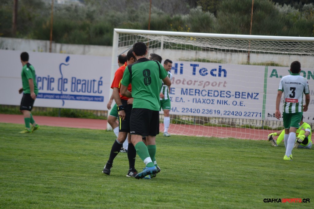 Οι φιλοξενούμενοι προσπάθησαν να απειλήσουν με τον Αγγελόπουλο αλλά ο Μέξι δήλωσε παρών και αφού στο 30’ ο Ανταγόρας προειδοποίησε στο 36’ έκανε δύο τα τέρματα με τον Αρκούδα μετά από πάσα του Τσιφτσίδη να κάνει το 2-0 που ήταν το αποτέλεσμα του πρώτου μέρους.