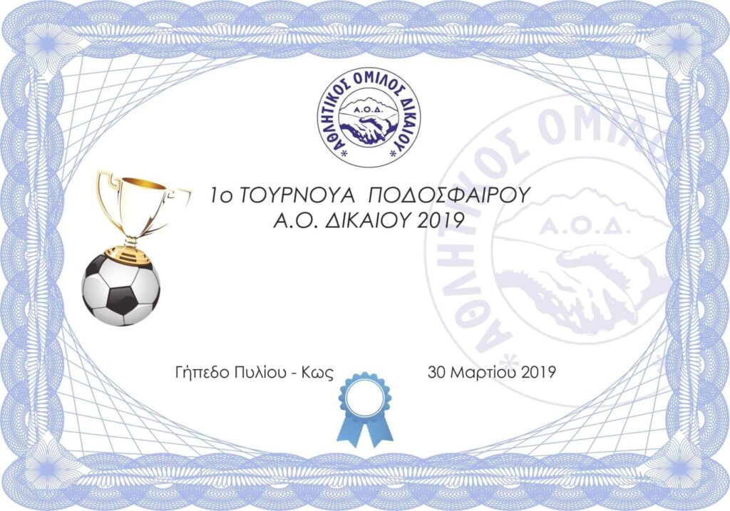 Τουρνουά ποδοσφαίρου διοργανώνει ο Α.Ο. Δικαίου (ΔΙ.ΑΣ)
