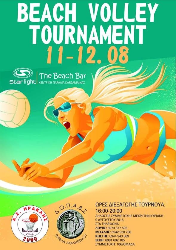 Ο Α.Σ. ΗΡΑΚΛΗΣ 2000 σε συνεργασία με τον Δ.Ο.Π.Α.Β.Σ. διοργανώνει Τουρνουά beach volley, στις 11-12 Αυγούστου στην Κεντρική παραλία της Καρδάμαινας στο Starlight beach bar.