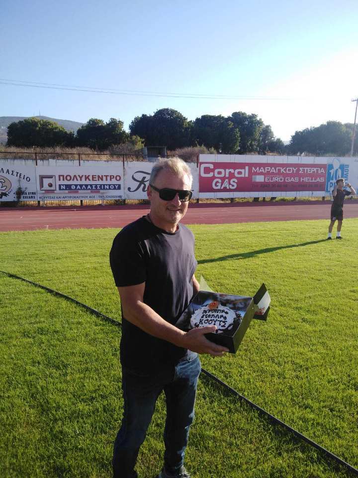 Τα γενέθλια του είχε χτες ο προπονητής της Α.Ε Κω, Στάθης Γκουντελίτσας και τόσο οι ποδοσφαιριστές όσο και η διοίκηση του συλλόγου θέλησαν να του ευχηθούν κάνοντας του μάλιστα έκπληξη κατά την διάρκεια της προπόνησης.