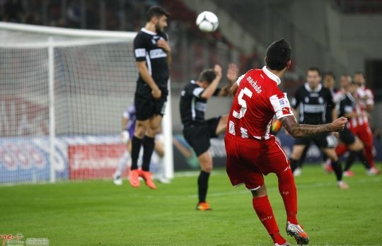 Ο Κώστας Μήτρογλου άνοιξε το σκορ για την ομάδα του Πειραιά με ωραίο αριστερό σουτ έπειτα από κομπίνα με τον Πάουλο Μασάντο στο 42′, ενώ ο Πορτογάλος με αριστουργηματική εκτέλεση φάουλ από πλάγια θέση στο 55′ έκανε… σεφτέ στα γκολ με την ερυθρόλευκη φανέλα.
