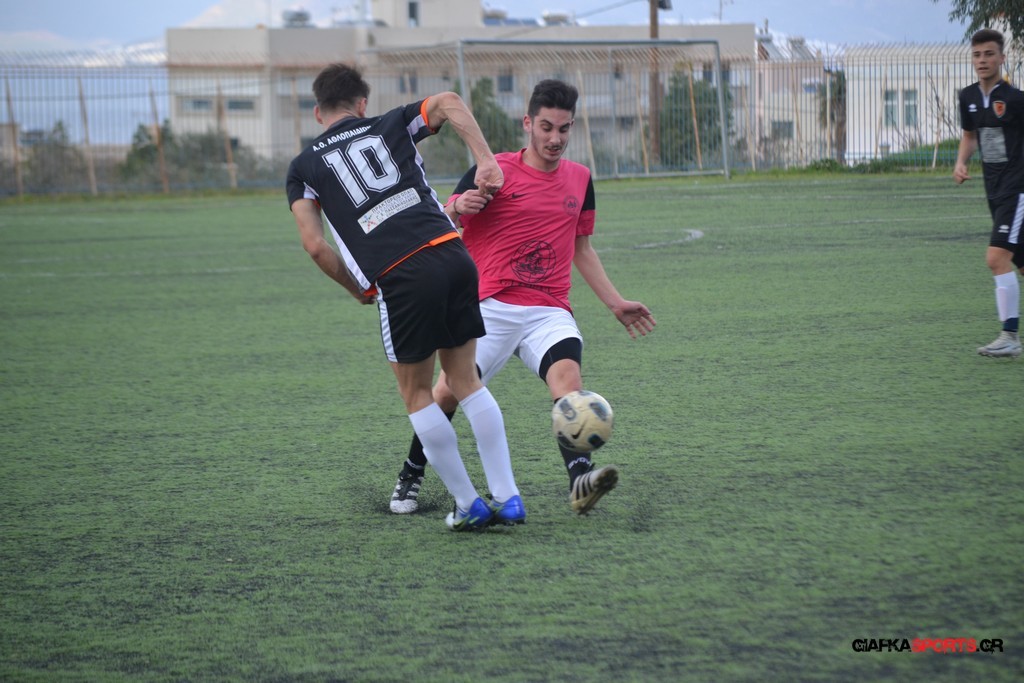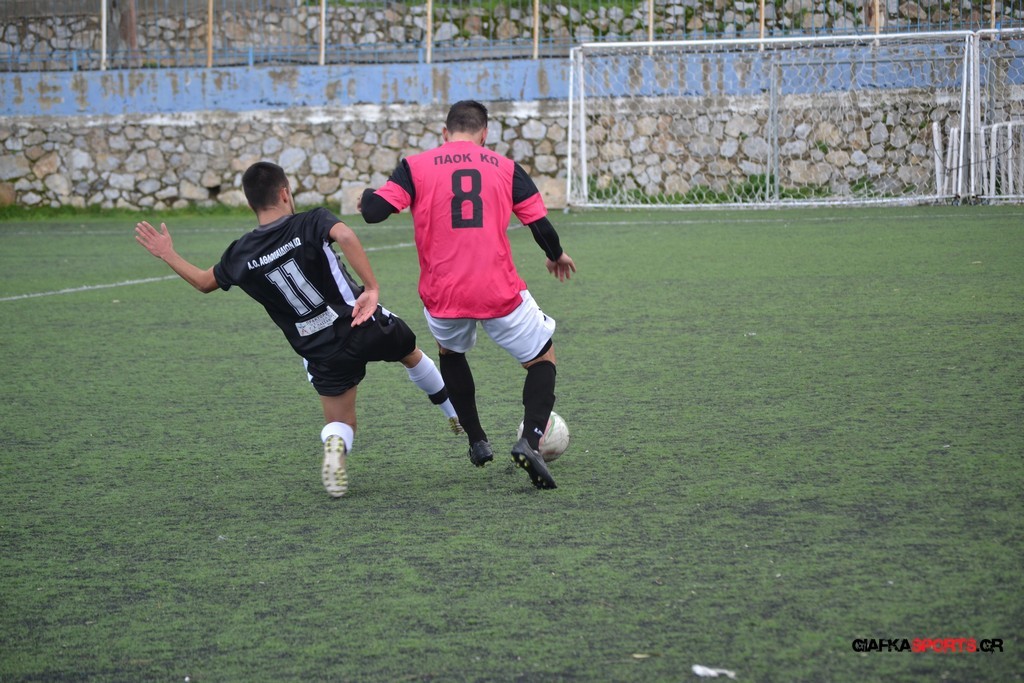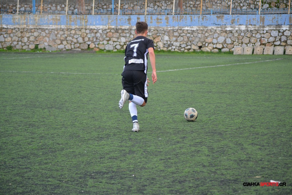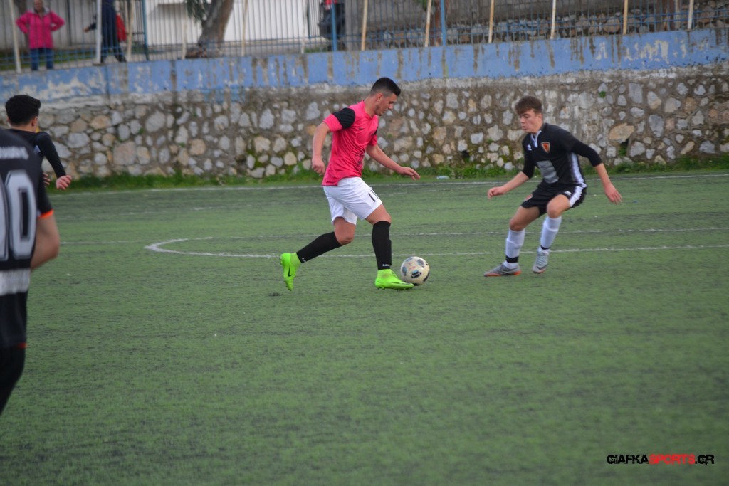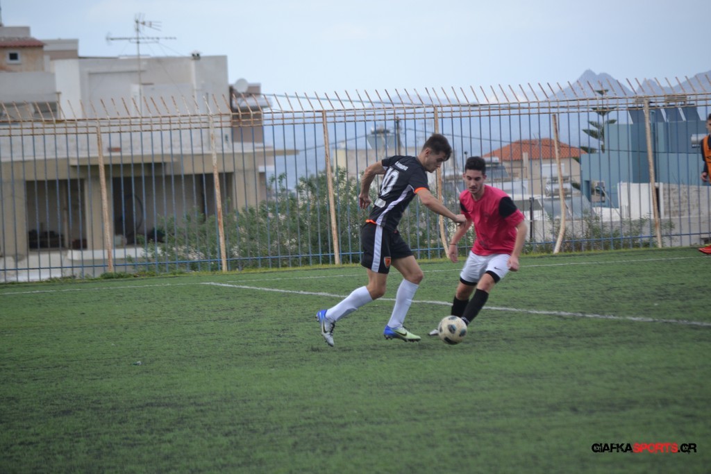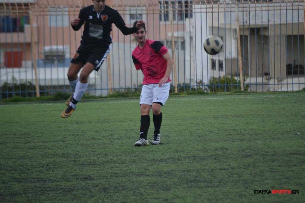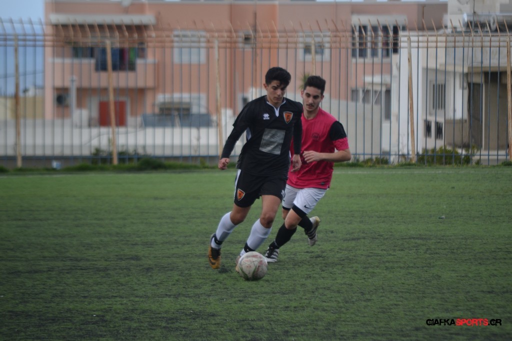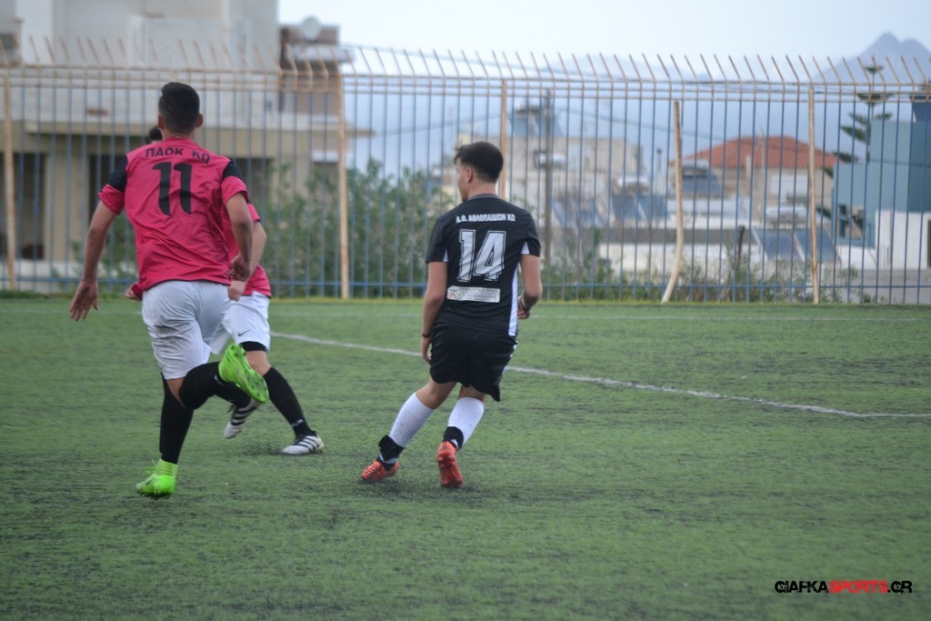 Η ομάδα του ΠΑΟΚ Κω μπήκε καλύτερα στον αγωνιστικό χώρο αφού είχε την κυκλοφορία και την πρωτοβουλία των κινήσεων δημιουργώντας μάλιστα φάσεις απ’ τα πλάγια. Ο Α.Ο Αθλοπαιδιών Κω προσπάθησε να χτυπήσει στην κόντρα και στο 38’ πήρε προβάδισμα στο σκορ όταν ο Χαρτοφίλης βρέθηκε απέναντι απ’ τον Κονταντώνη και πέρασε την μπάλα από πάνω του κάνοντας το 0-1.