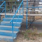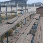 Κερκίδες σάπιες, τα σανίδια σκορπισμένα και σίδερα άκρως επικίνδυνα για τους μικρούς αθλητές και του γονείς τους που αναγκαστικά τις χρησιμοποιούν.