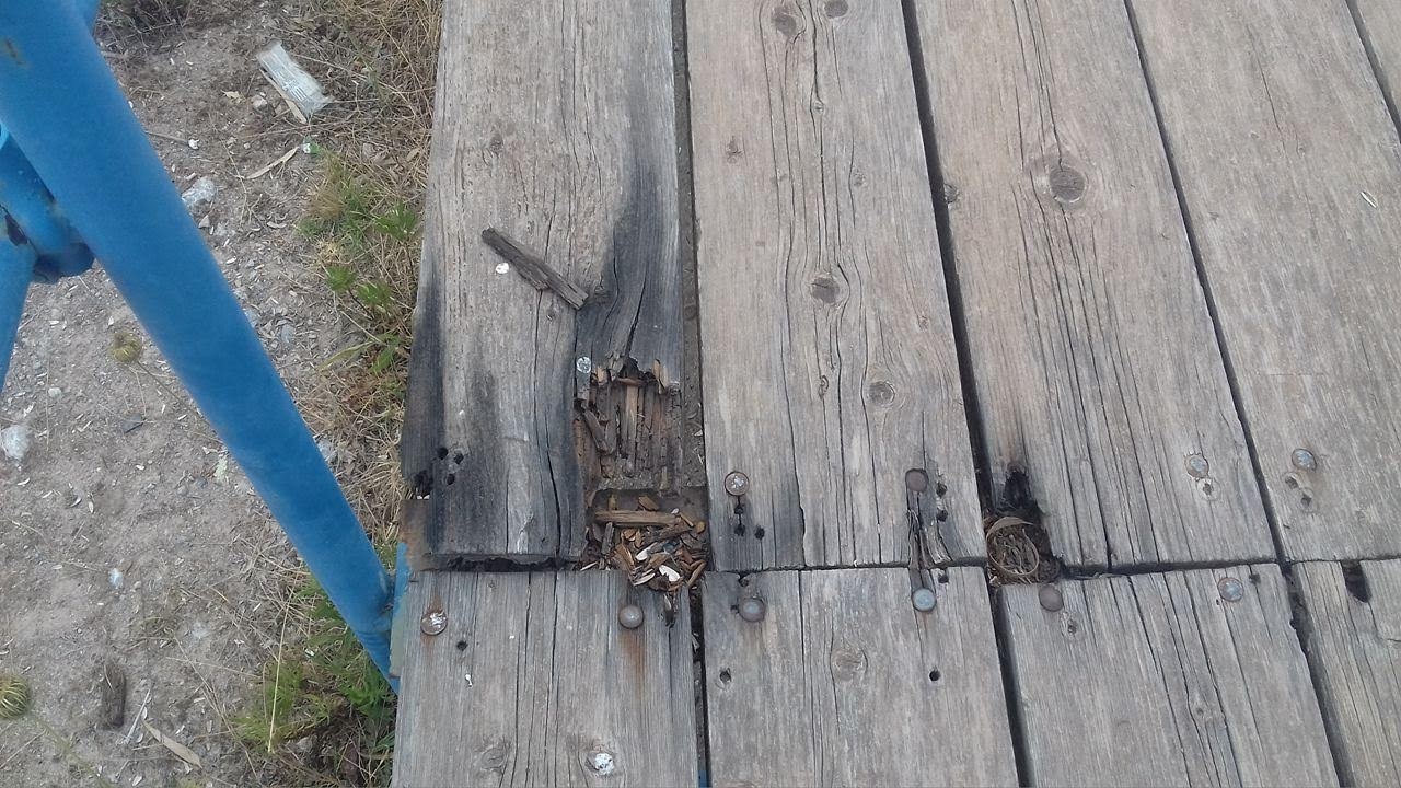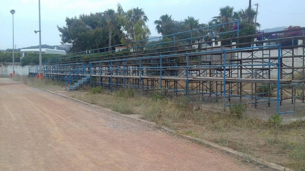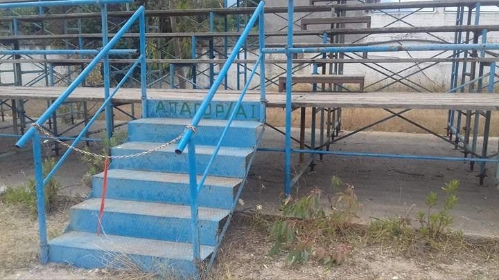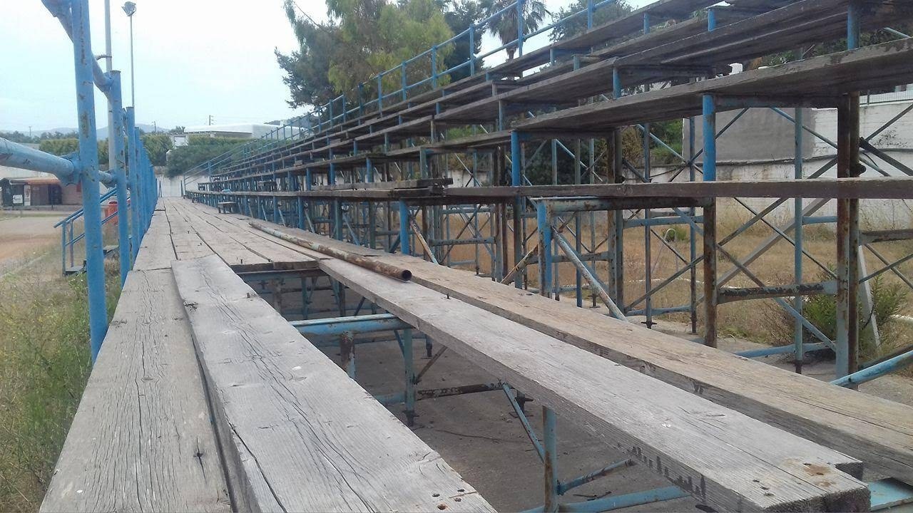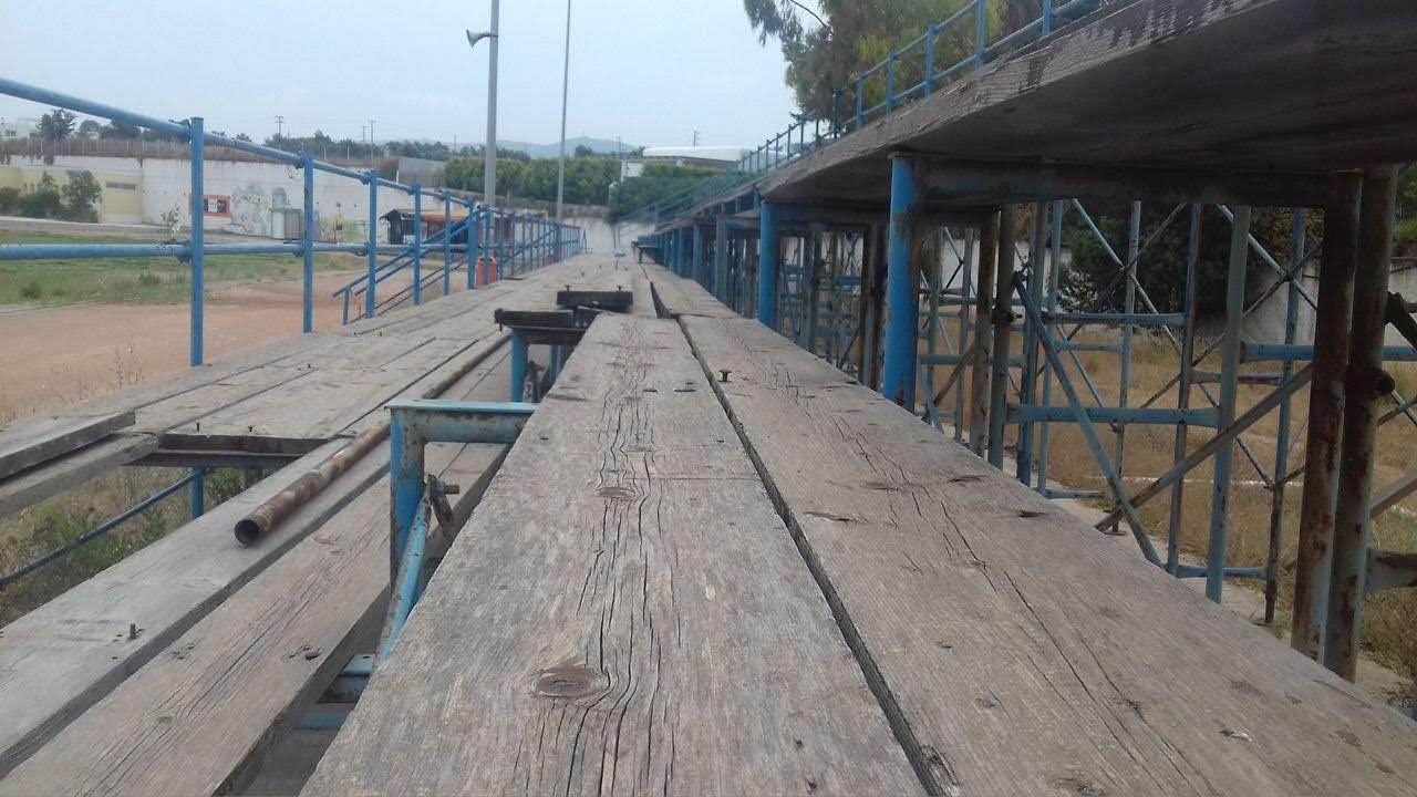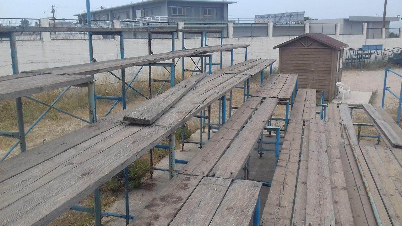 Κερκίδες σάπιες, τα σανίδια σκορπισμένα και σίδερα άκρως επικίνδυνα για τους μικρούς αθλητές και του γονείς τους που αναγκαστικά τις χρησιμοποιούν.