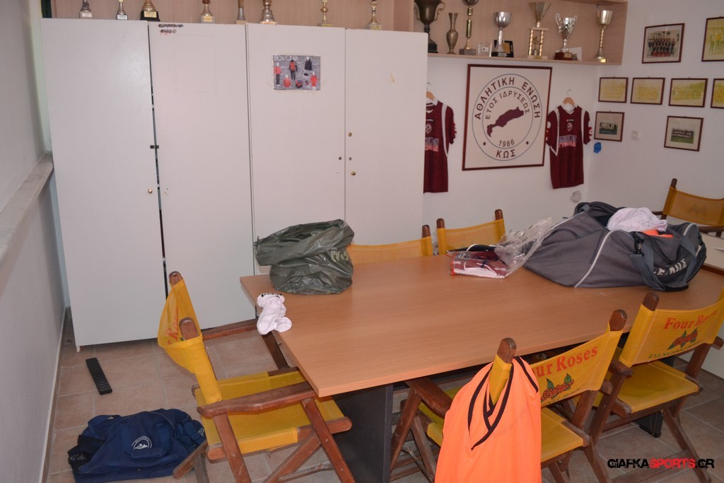 Μεγάλες ζημιές υπέστη μάλιστα το γραφεία του ΠΑΟΚ Κω στο οποίο έσπασαν όλες τις ντουλάπες, και έκλεψαν πέρα απ’ τα τρόπαια του συλλόγου και έναν μεγάλο σάκο με μπάλες.