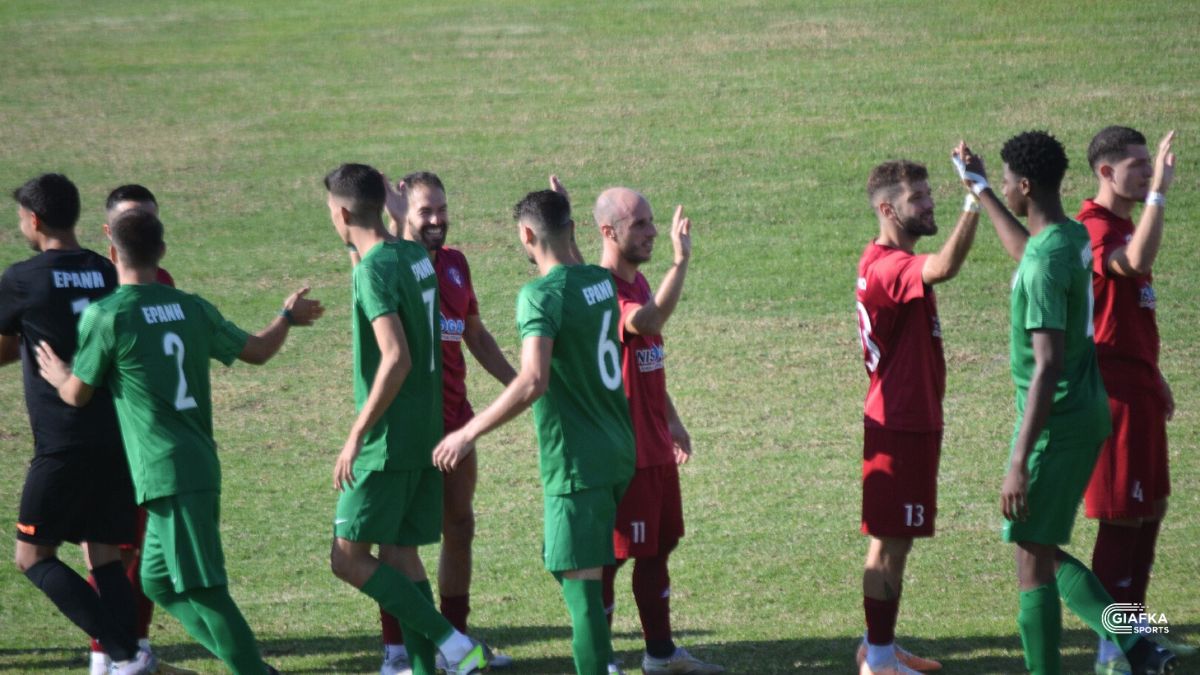 Η ομάδα του Θοδωρή Γιακαλή ανέβασε την απόδοση της απ’ το 25’ και μετά και στο 37’ ο νεοαποκτηθείς Φάκκης με κεφαλιά έκανε το 1-1 ενώ πριν το φινάλε του ημιχρόνου ο Καπλάνης με κεφαλιά και εκείνος έδωσε προβάδισμα στην ομάδα του με 2-1.