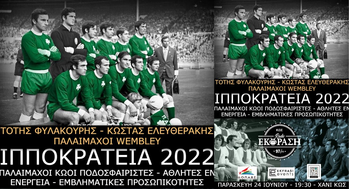 Το Ράδιο Έκφραση με την στήριξη του ΔΟΠΑΒΣ στα πλαίσια των Θερινών Ιπποκρατείων 2022 διοργανώνει εκδήλωση με σκοπό την βράβευση των παλαίμαχων ποδοσφαιριστών του Παναθηναϊκού που έλαβαν μέρος στο Wembley καθώς και τη βράβευση Κώων Ποδοσφαιριστών και Αθλητών εν ενεργεία και άλλων εμβληματικών προσωπικοτήτων του Κωακού αθλητισμού, την Παρασκευή 24 Ιουνίου 2022 στο Ιστορικό Λαογραφικό Μουσείο(Χάνι) στις 19:30.