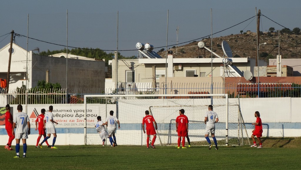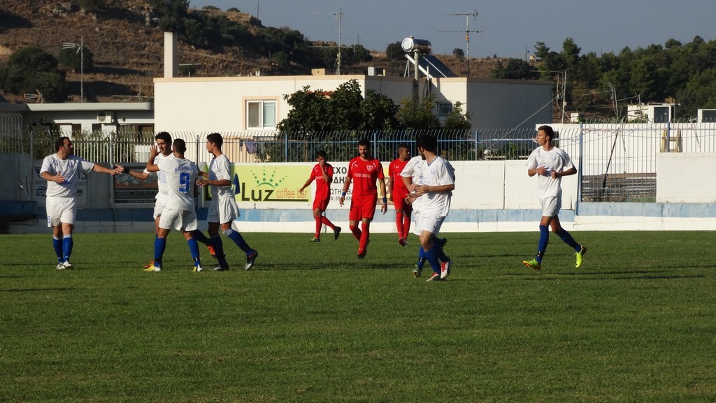 Με το καλημέρα στο ματς ο Α.Ο Δικαίου κατάφερε να ανοίξει το σκορ όταν στο 5ο λεπτό ο Χρήστος Χατζηφούντας εκτέλεσε το φάουλ στο δεύτερο δοκάρι ο Τριμμάτης με κεφαλιά πάσα έστρωσε στον Οικονόμου ο οποίος από κοντά έκανε το 1-0 για τους «κυανόλευκους». Από εκείνο το σημείο και μετά οι γηπεδούχοι ανέλαβαν την πρωτοβουλία των κινήσεων έψαξαν κυρίως απ’ τα πλάγια να πατήσουν την αντίπαλη περιοχή και κατάφεραν λίγο πριν το τέλος του ημιχρόνου να πετύχουν και δεύτερο τέρμα μετά από πέναλτι που κέρδισε ο Οικονόμου και εκτέλεσε εύστοχα ο Πανόπουλος.