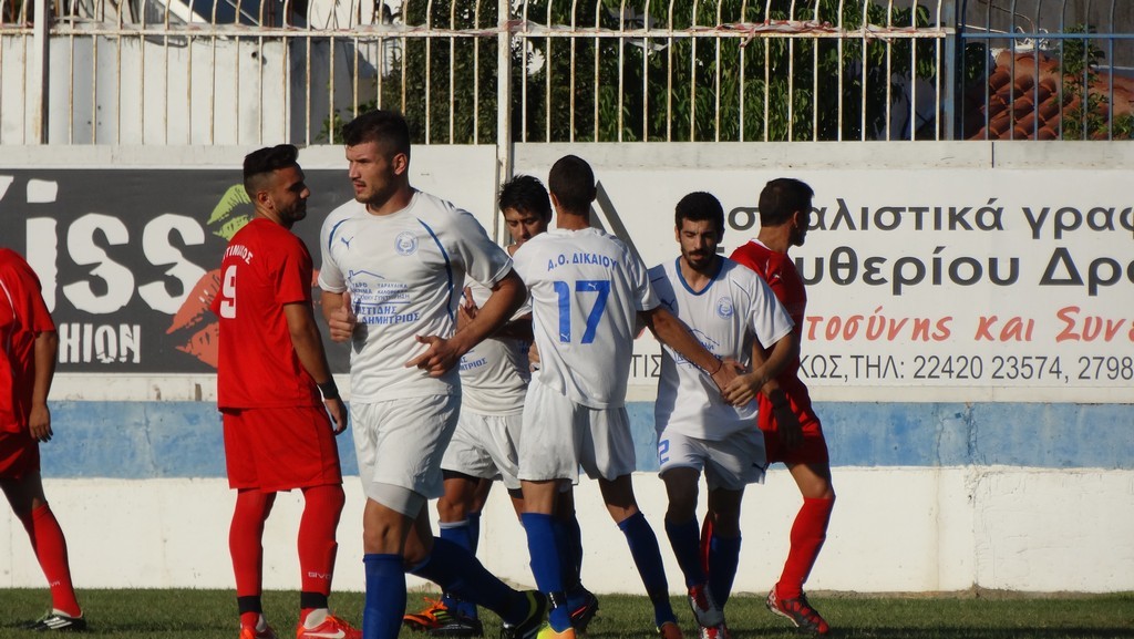 Παρουσιάζοντας ένα καλό αγωνιστικό πρόσωπο στη μεγαλύτερη διάρκεια του αγώνα ο Α.Ο Δικαίου επικράτησε με 3-0 του Αντίμαχου στο φιλικό που έγινε στο γήπεδο Πυλίου σήμερα το απόγευμα. Πανόπουλος (40’, 54’) και Οικονόμου (5’) τα γκολ του Α.Ο Δικαίου που δείχνουν να βρίσκουν ρυθμό εν όψει της πρεμιέρας του πρωταθλήματος. Απ’ την άλλη πλευρά ο Αντίμαχος πέρα από κάποια ξεσπάσματα στο πρώτο μέρος έδειξε ότι θέλει αρκετή δουλειά ακόμη για να φτάσει στα επιθυμητά επίπεδα ετοιμότητας που θέλει ο Γιώργος Σταμάτης.