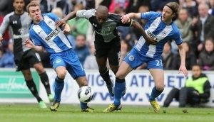 Ο Κάλουμ ΜακΜάναμαν έβαλε τους γηπεδούχους μπροστά στο σκορ στο 49`, αλλά το αυτογκόλ του Μπόις στις καθυστερήσεις στέρησε από τη Γουίγκαν 2 πολύτιμους βαθμούς, αφήνοντάς την στη ζώνη του υποβιβασμού.