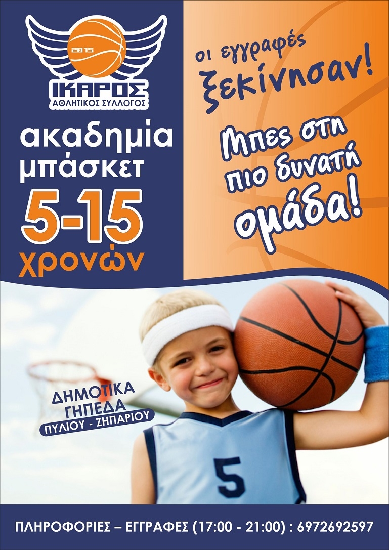 Ξεκίνησαν οι εγγραφές στον Ίκαρο. Ακαδημία μπάσκετ από 5-15 ετών.