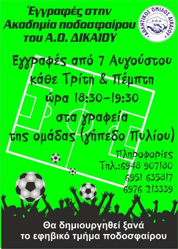 Αφίσα με την οποία ανακοινώνει την έναρξη των εγγραφών μας κοινοποίησε η ομάδα του Α.Ο Δικαίου.