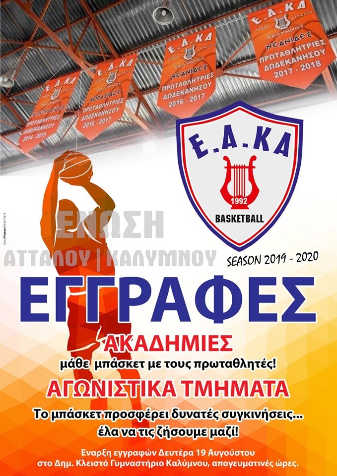 Η Ένωση Αττάλου & Καλύμνου ( Ε.Α.ΚΑ) συνεπής στο ετήσιο ραντεβού , πριν την πρώτη προπόνηση προετοιμασίας για την νέα αθλητική σεζόν των αγωνιστικών τμημάτων την 20η Αυγούστου , να βρεθεί με τους γονείς και τους αθλητές αυτών των τμημάτων για ενημέρωση για το νέο πρόγραμμα (προτάσεις- επισημάνσεις) και την μέτρηση των αθλητών μας (βάρος , ύψος) όπου θα βοηθήσει το πρόγραμμα που θα ακολουθηθεί από τους έμπειρους προπονητές της ιστορικής ομάδας . Σήμερα λοιπόν 19 Αυγούστου και ώρα 20:00μμ καλούμε τα αγωνιστικά τμήματα των κοριτσιών μας και 21:00μμ τα αγωνιστικά τμήματα των αγοριών μας, στο κλειστό μας Γυμναστήριο .