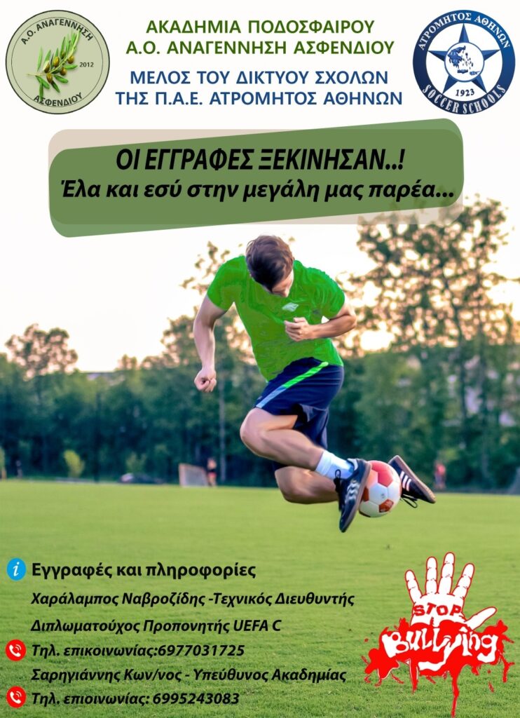 Επιπροσθέτως με μεγάλη μας χαρά ανακοινώνουμε ότι οι διεργασίες για την ένταξη της Ακαδημίας μας στο δίκτυο σχολών ποδοσφαίρου της Π.Α.Ε. Ατρόμητος Αθηνών έχουν ολοκληρωθεί με επιτυχία και θα ενημερωθείτε σχετικά, τις επόμενες ημέρες με νέα ανακοίνωση.