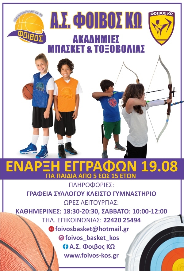 Την Δευτέρα 19 Αυγούστου ξεκινάνε οι εγγραφές στα τμήματα καλαθοσφαίρισης και τοξοβολίας του συλλόγου μας.