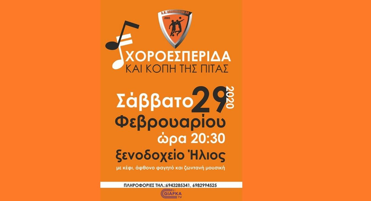 Τη δική τους χοροεσπερίδα και κοπή πίτας διοργανώνουν το προσεχές Σάββατο οι Αθλοπαιδιές Κω… Η εκδήλωση θα γίνει το Σάββατο 29 Φεβρουαρίου και συγκεκριμένα στις 20:30 στο ξενοδοχείο «Ήλιος» και θα περιλαμβάνει άφθονο φαγητό, ζωντανή μουσική και κέφι. Για περισσότερες πληροφορίες στα τηλέφωνα: 6943285341 και 6982994525. Ο Α.Ο. Αθλοπαιδιές περιμένει τους φίλους για μία ξεχωριστή βραδιά.