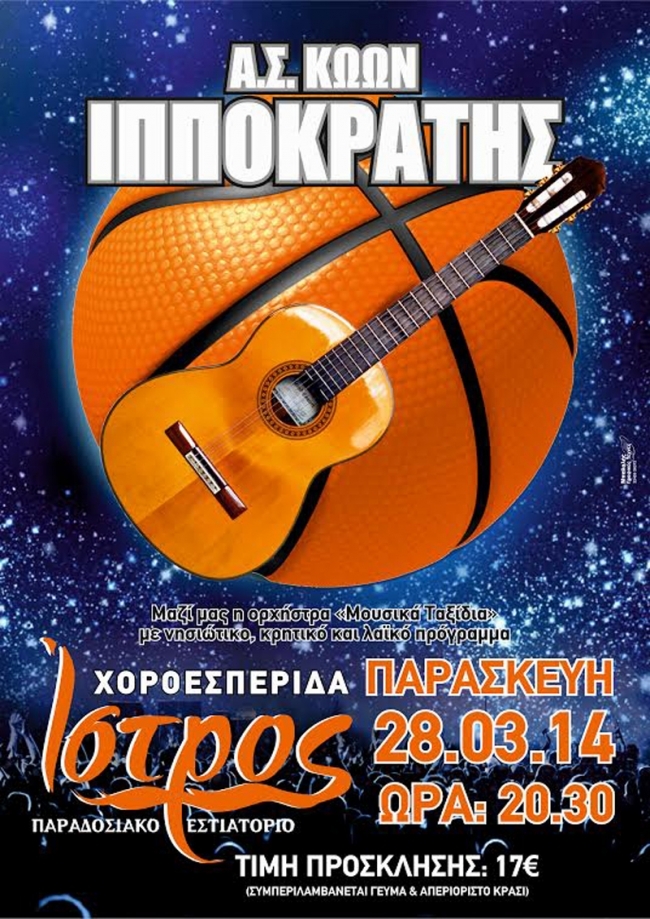 Παρασκευή 28 Μαρτίου ο ΑΣ ΙΠΠΟΚΡΑΤΗΣ πραγματοποιεί χοροεσπερίδα στο εστιατόριο ΙΣΤΡΟΣ με ζωντανή μουσική , φαγητό και κρασί και τιμή εισόδου 17 ευρώ.