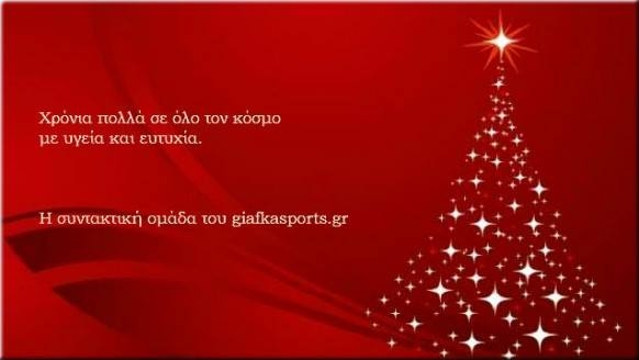 Η συντακτική ομάδα του giafkasports.gr σας εύχεται καλές γιορτές με ευτυχία, αγάπη και κυρίως υγεία. Αυτές τις άγιες ημέρες να ζητήσουμε συγνώμη σε όσους στεναχωρήσαμε και να πούμε ένα σ’ αγαπώ σε όσους είναι δίπλα μας και μας στηρίζουν.