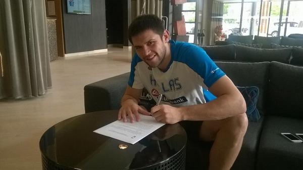 Ο μάνατζέρ του, Γιώργος Σφαιρόπουλος δημοσίευσε στο twitter μία φωτογραφία, όπου ο 24χρονος φόργουορντ βάζει την υπογραφή του στο συμβόλαιο, με το χαμόγελό του να τα λέει… όλα!