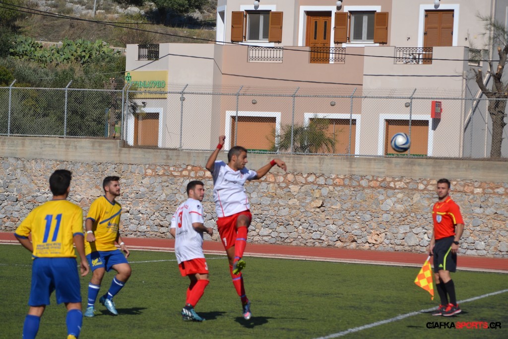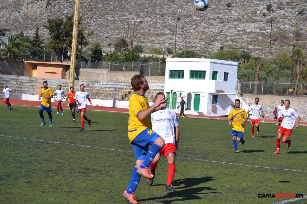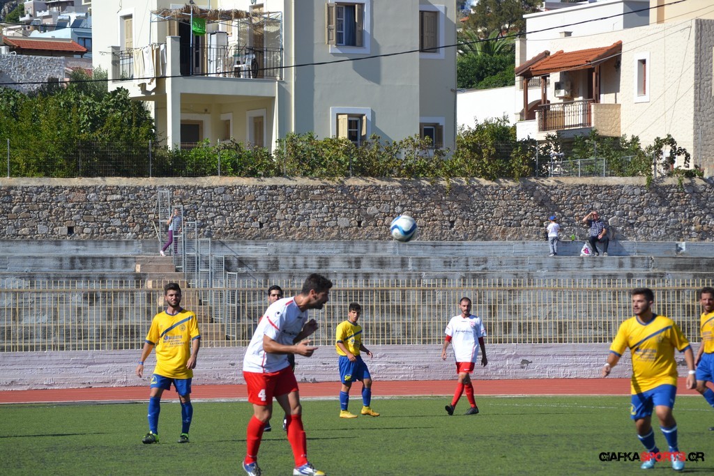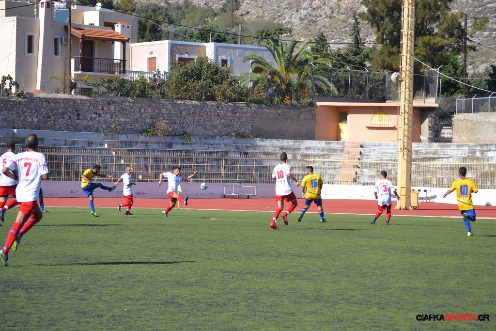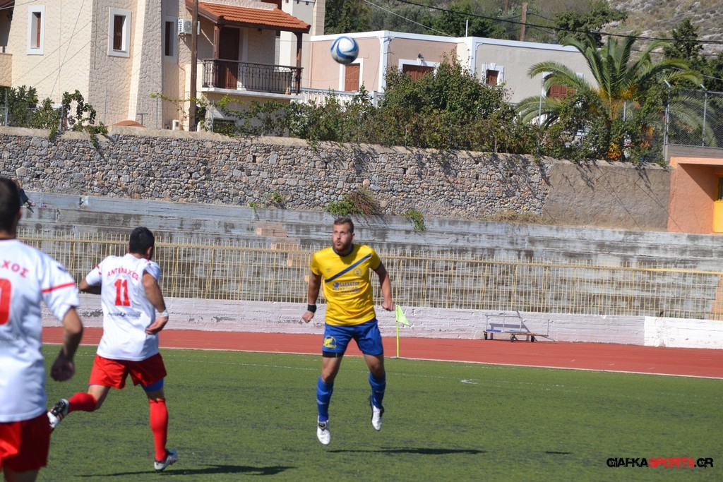 Πατώντας το γκάζι απ’ τα πρώτα λεπτά της αναμέτρησης και αφού αρχικά ήταν τυχερός αφού η εκτέλεση πέναλτι του Τσαγκάρη χτύπησε στο αριστερό δοκάρι του Μιχαλάκη, ο Αντίμαχος επικράτησε με 0-4 του Καλυμνιακού και συνέχισε αυτήν την εκπληκτική πορεία πρωταθλητισμού. Στο 18’ το σκορ ήταν 0-3 με σκόρερ τους Μποϊλή, Συνεσίου και Χατζησουλεϊμάν με τον Βλαντιμίροφ στο 64’ να διαμορφώνει το τελικό 0-4 για τους «κόκκινους» που έφτασαν τους 24 βαθμούς στο πρωτάθλημα της Α’ κατηγορίας.