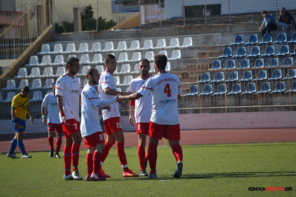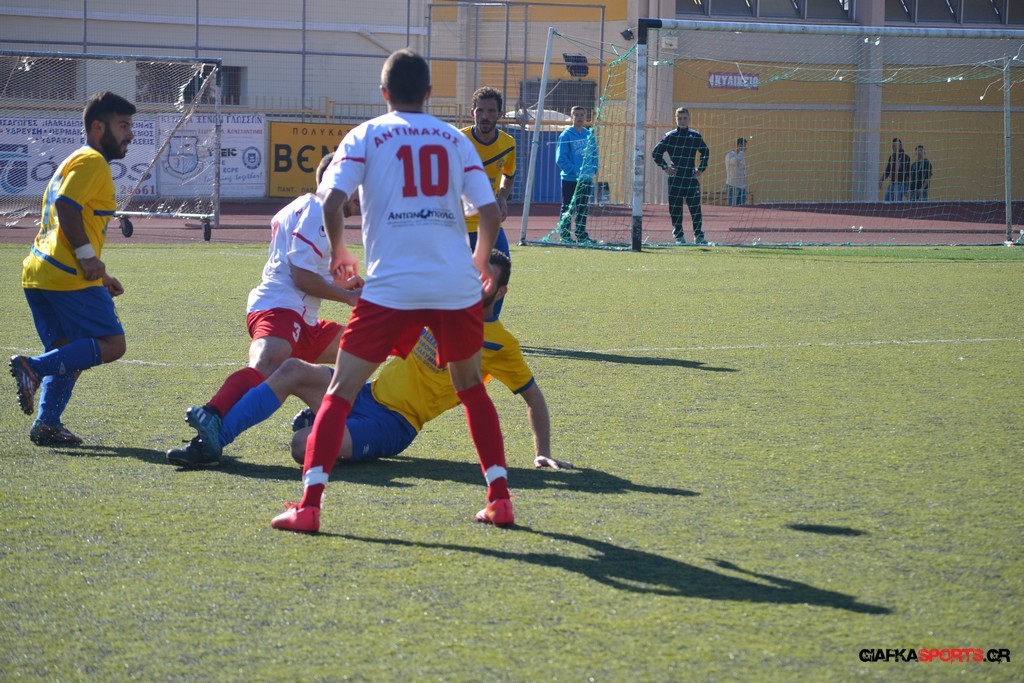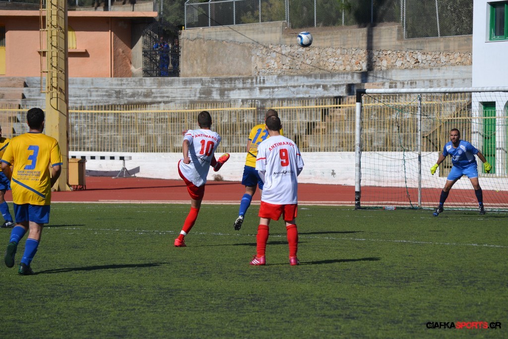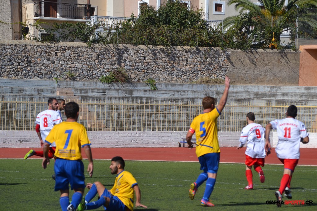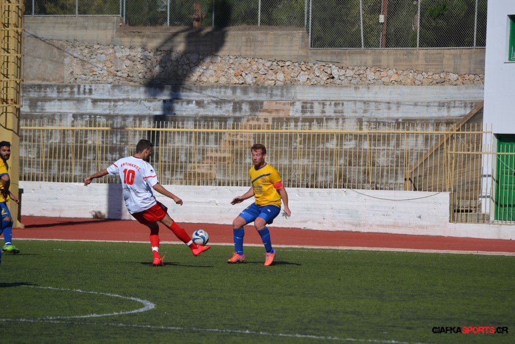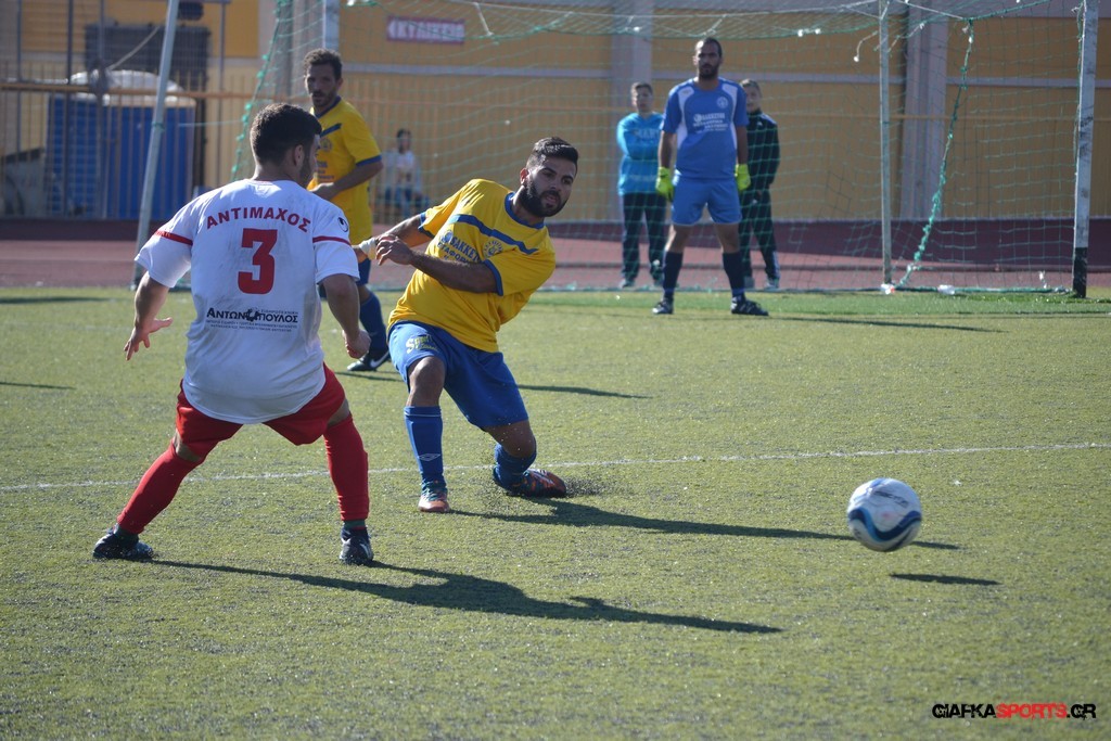 Στο 15’ ο Βακουφτσής έκανε την σέντρα από δεξιά και ο Συνεσίου με δυνατό σουτ έστειλε την μπάλα στην αριστερή γωνία του Ζερβού για το 0-2 ενώ τρία λεπτά αργότερα ο «φορμαρισμένος» Χατζησουλεϊμάν με σουτ από πλάγια θέση ουσιαστικά «κλείδωσε» τη νίκη για τον Αντίμαχο.