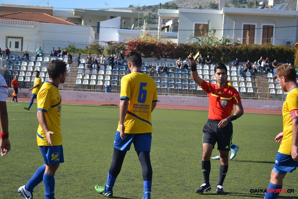 10′ Εκτέλεση κόρνερ για τον Καλυμνιακό με την μπάλα να βρίσκει στο χέρι του Σωτίρι και τον Ωραιόπουλο να δείχνει το σημείο του πέναλτι. Την εκτέλεση ανέλαβε ο Τσαγκάρης στέλνοντας την μπάλα στο αριστερό δοκάρι του Μιχαλάκη.